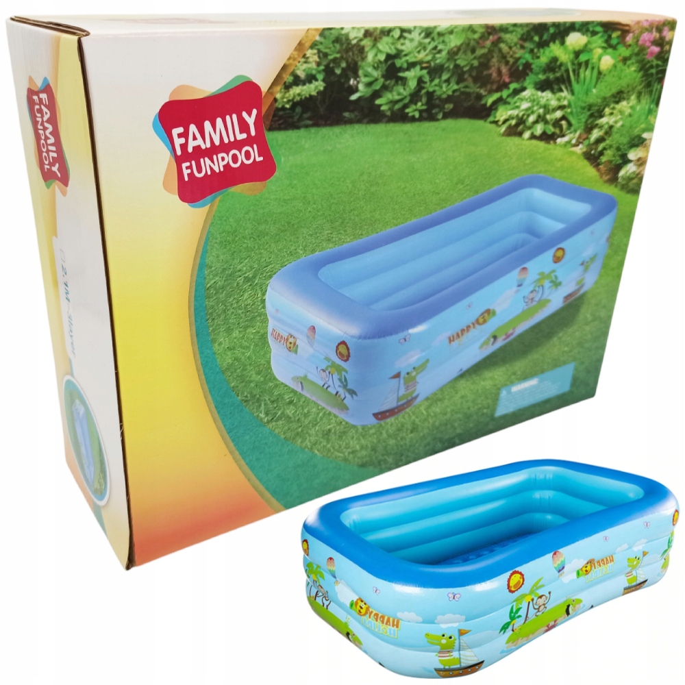 Przygotuj się na niezapomniane lato pełne plusków i beztroskiej zabawy z naszym fantastycznym, dmuchanym basenem „FAMILY FUNPOOL”! Ten uroczy, prostokątny basen to idealne centrum wodnych przygód dla Twoich dzieci w ogrodzie, na tarasie czy nawet na większym balkonie.