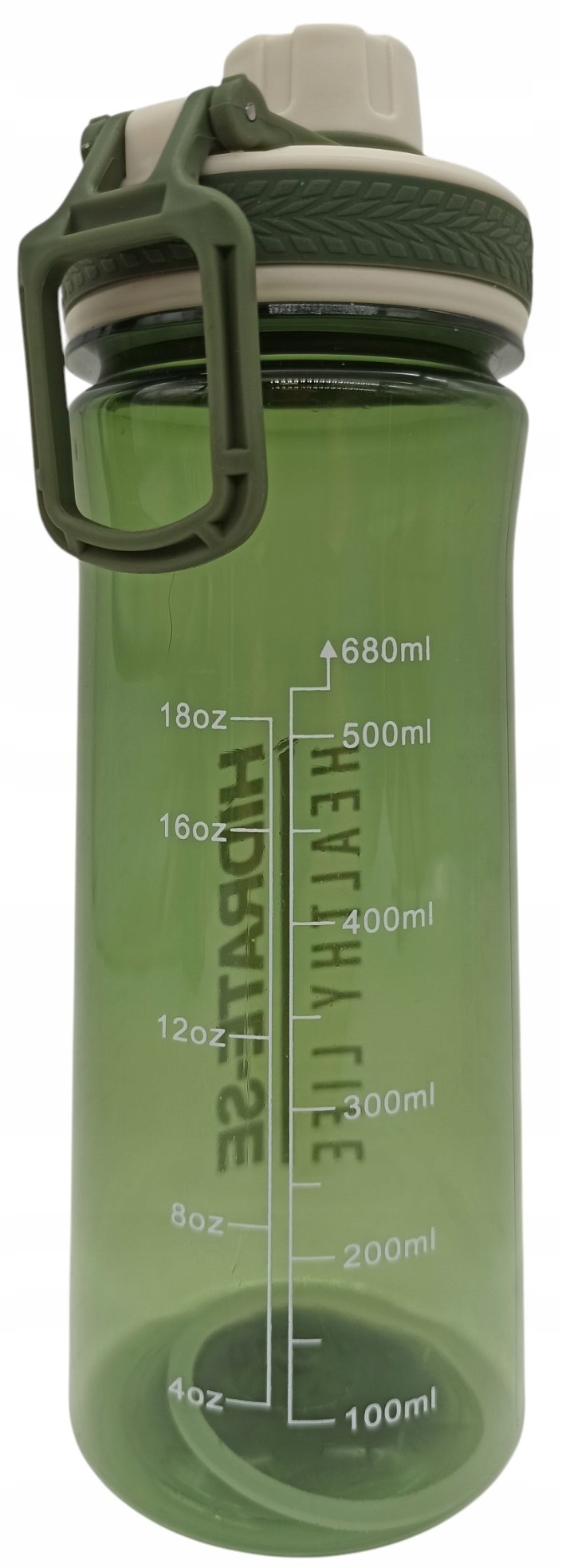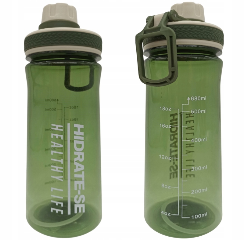 BIDON SPORTOWY NA WODĘ Z MIARKĄ BUTELKA ZAKRĘCANA ZIELONY 680ML