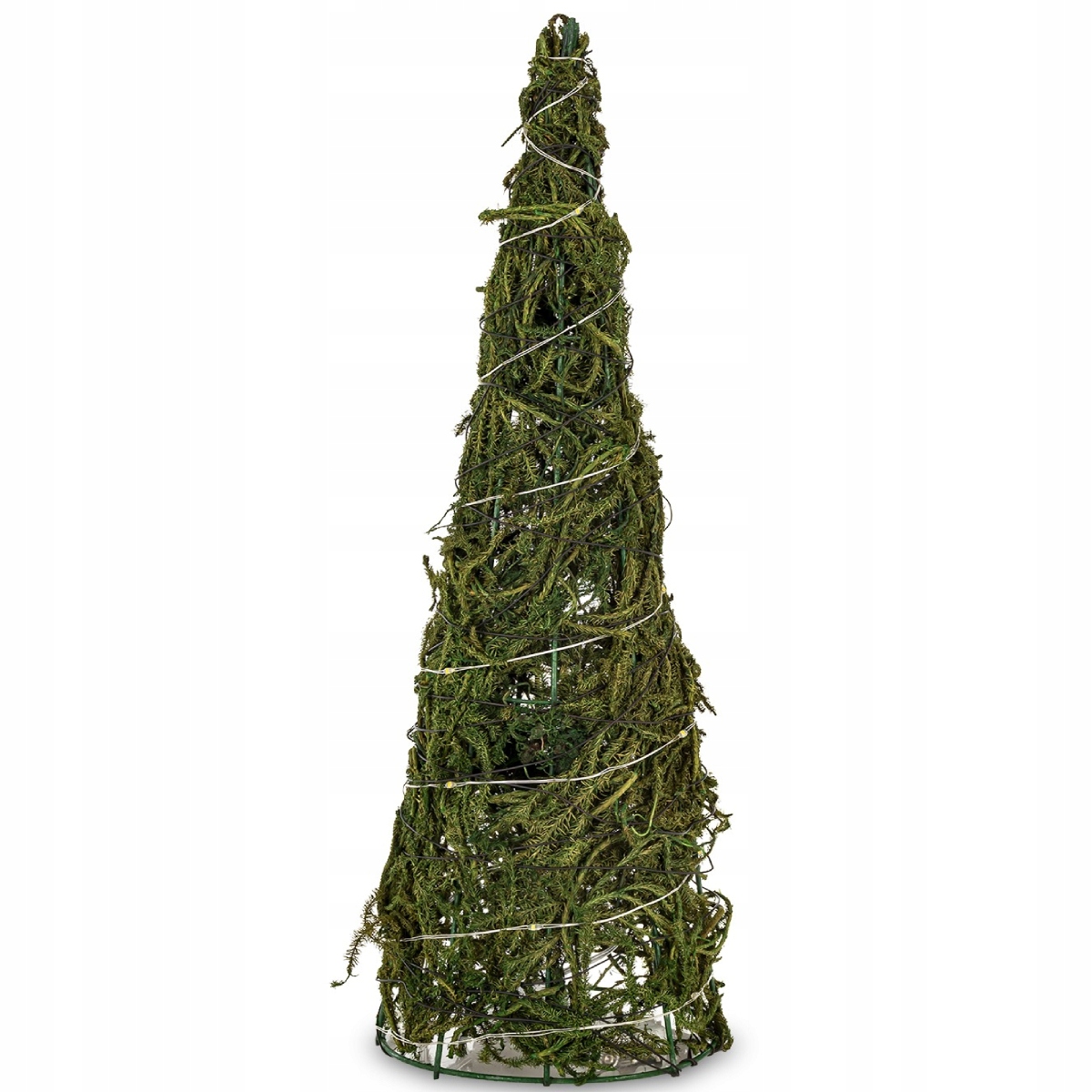 Efekt Świetlny: Po włączeniu lampki emitują ciepłe, żółte/złote światło, które pięknie rozświetla strukturę mchu i tworzy przytulny, świąteczny nastrój (widoczne na zdjęciu z ciemnym tłem).