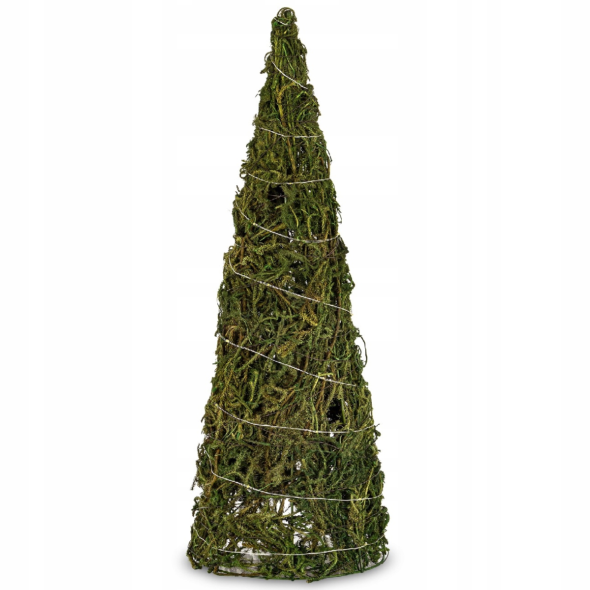 - Kształt i Konstrukcja: Choinka ma wydłużony, smukły kształt stożka o imponującej wysokości 60 cm. Jej rdzeń stanowi metalowy stelaż, który zapewnia stabilność.