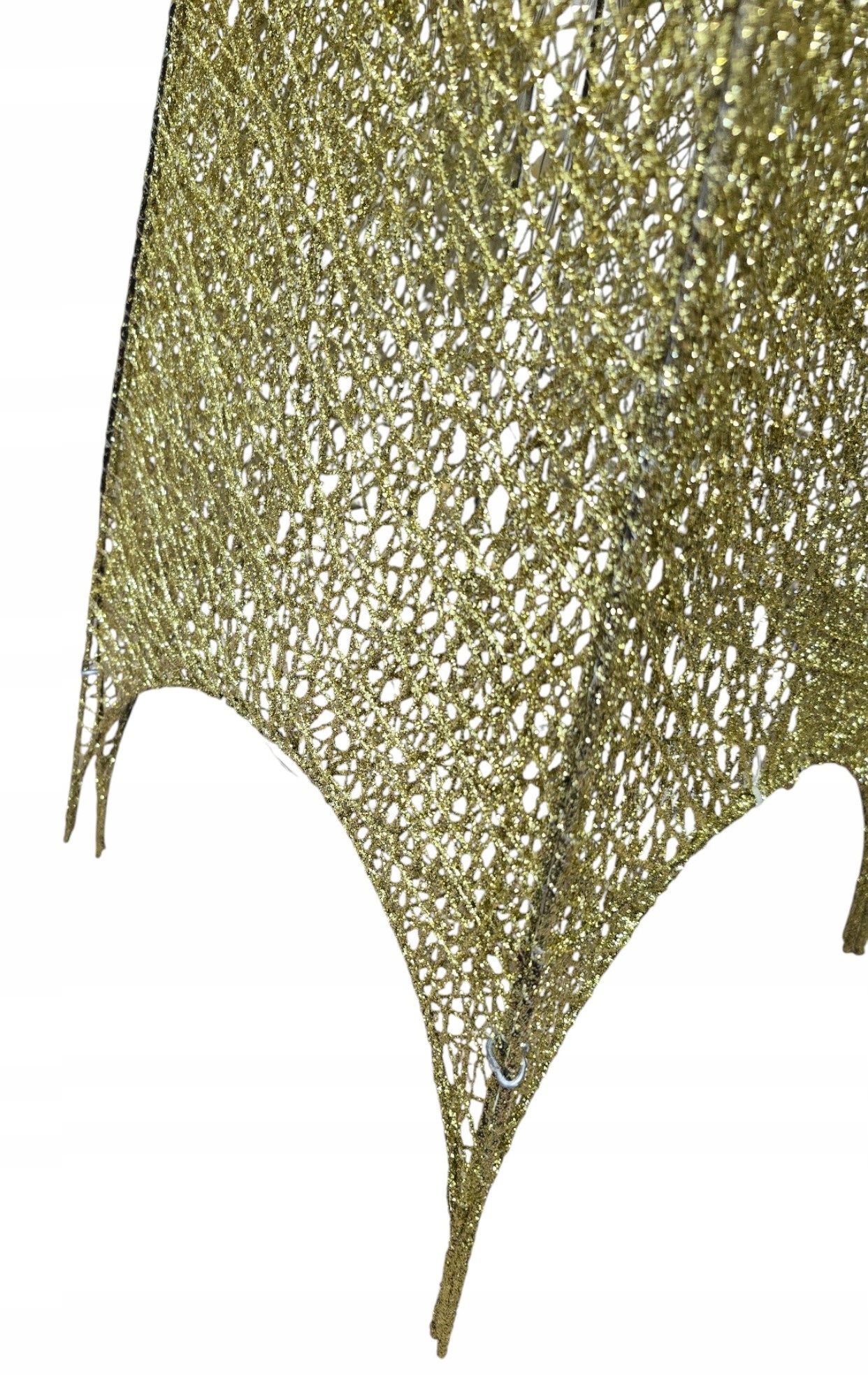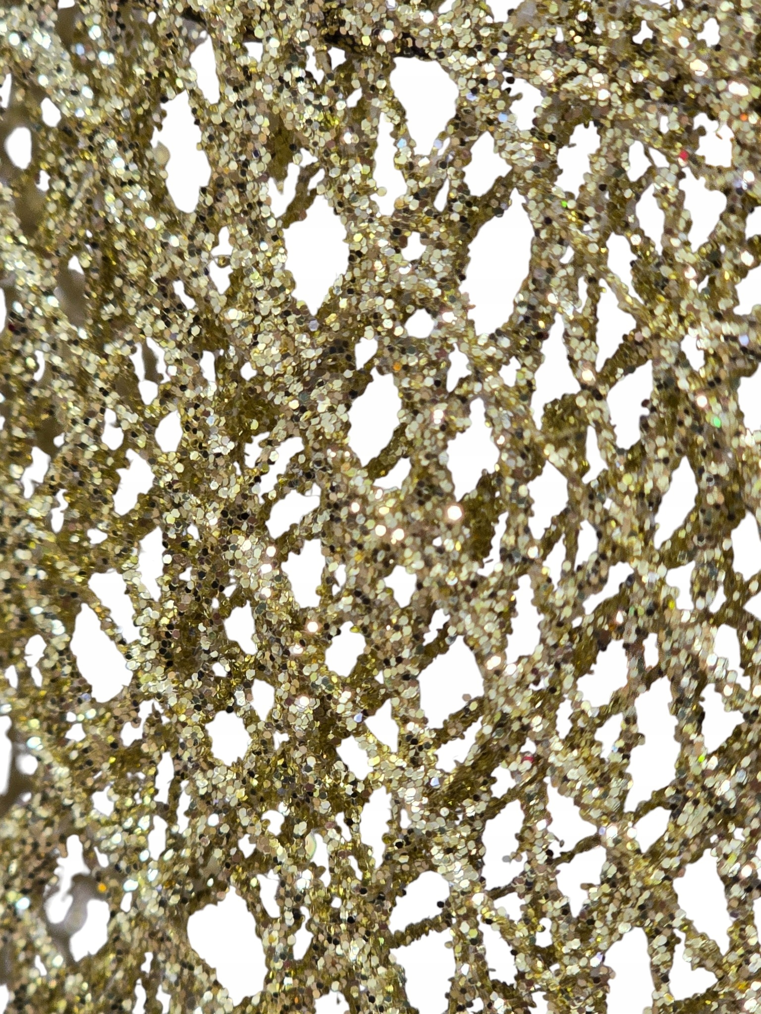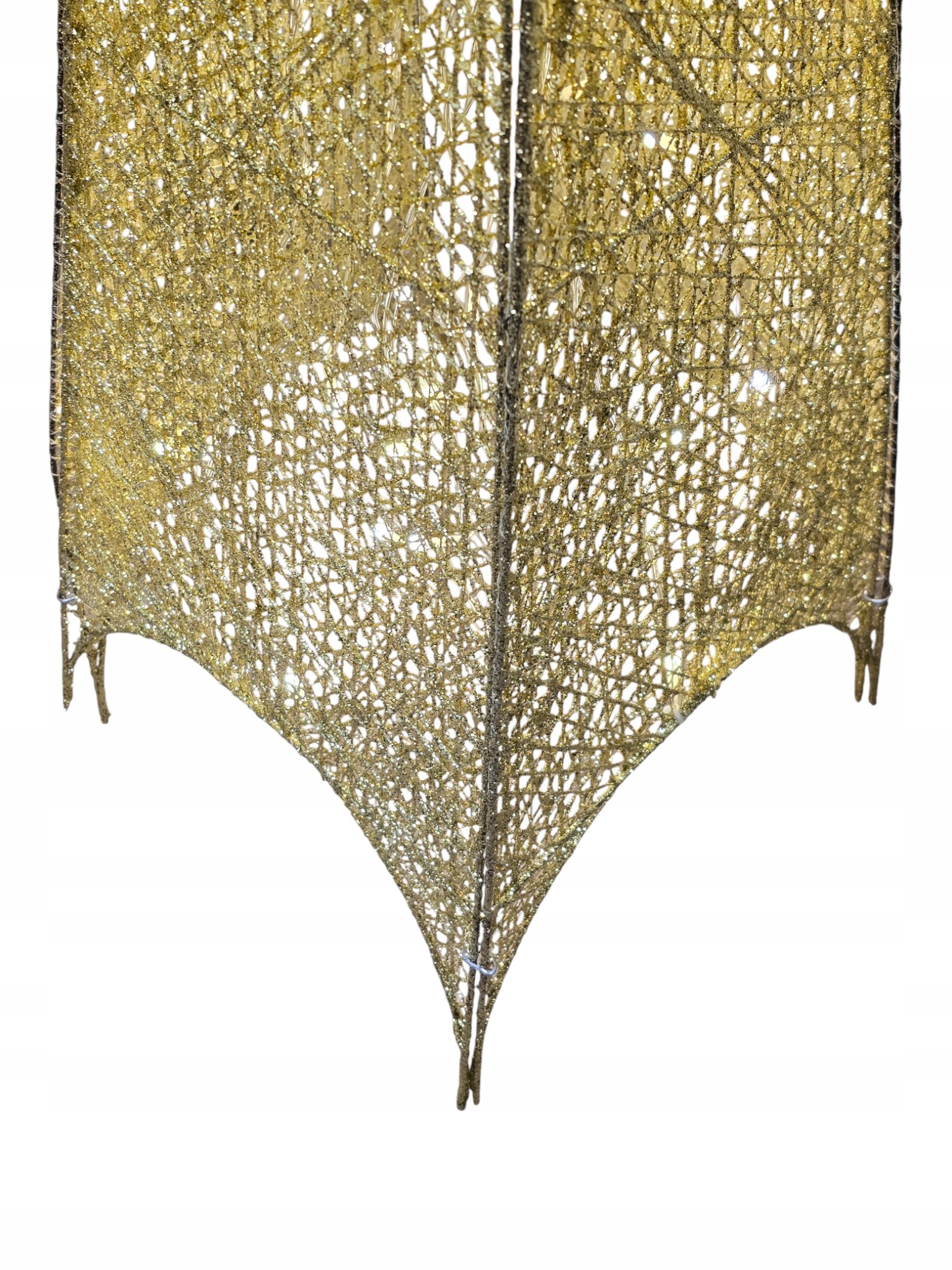 Choinka wyróżnia się unikatowym efektem Ombre (cieniowania): od szczytu w kolorze delikatnej bieli lub srebra, przechodzi płynnie do podstawy mieniącej się bogactwem złotego brokatu. Cała konstrukcja jest stworzona z misternie splecionych włókien, które nadają dekoracji lekką, ażurową formę.