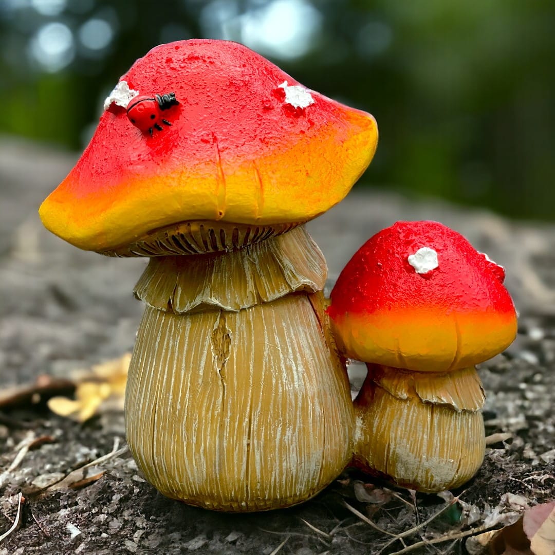 Grzybki Czerwone to unikalna ozdoba, która dodaje magii każdemu ogrodowi. Te dwa dekoracyjne grzybki, w różnych rozmiarach, mają realistyczne białe kropki oraz uroczy detal w postaci biedronki. Stwórz niezapomnianą atmosferę, która zachwyci Twoich gości i sprawi, że Twój ogród będzie naprawdę wyjątkowy!