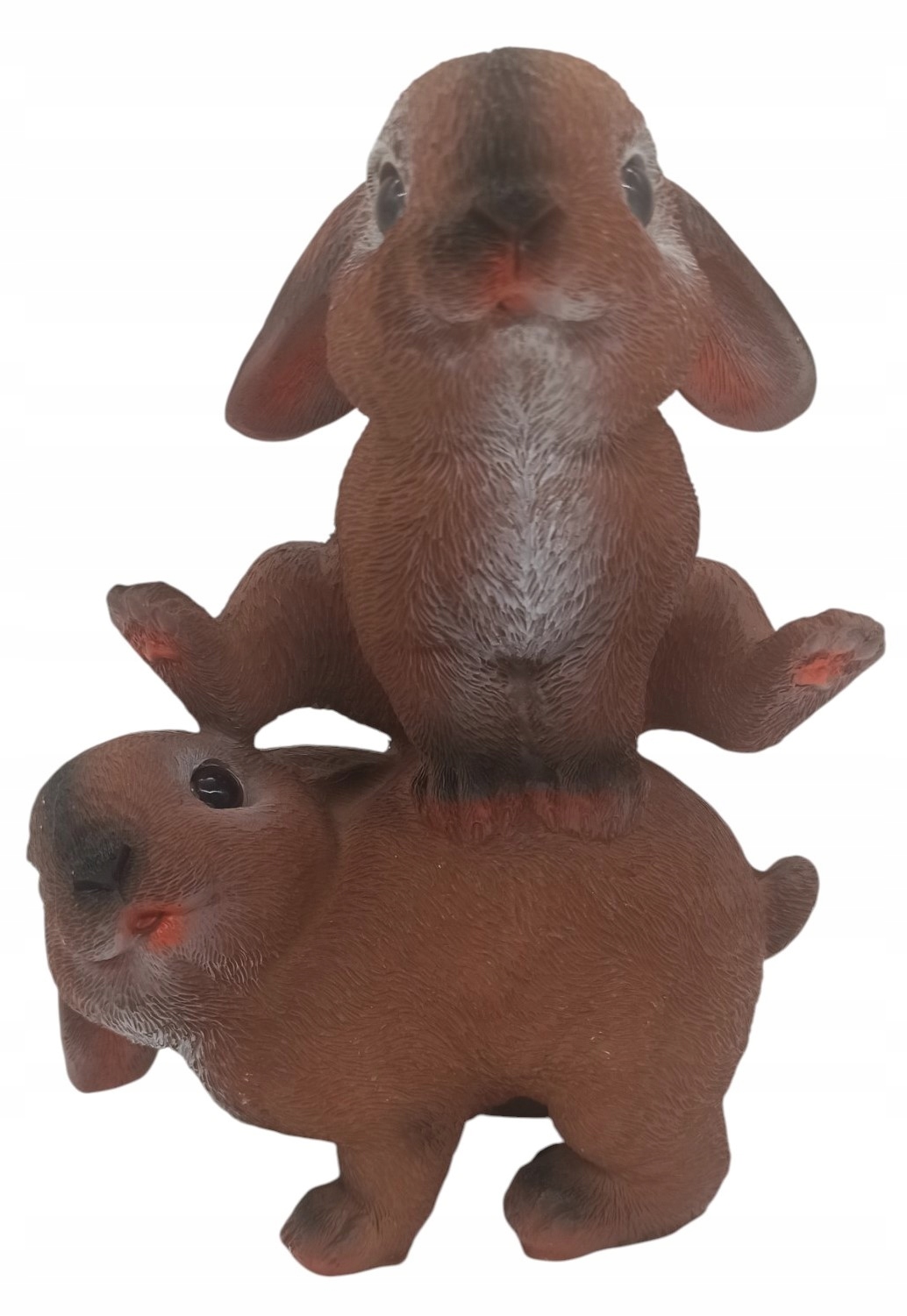 Szukasz wyjątkowej dekoracji, która wniesie do Twojego ogrodu, balkonu, tarasu lub wnętrza odrobinę magii i dziecięcej radości? Przedstawiamy rozczulającą figurkę przedstawiającą dwa urocze króliki w zabawnej, figlarnej pozie – jeden siedzi na drugim! Ta słodka kompozycja to gwarancja uśmiechu na twarzy każdego, kto ją zobaczy.
