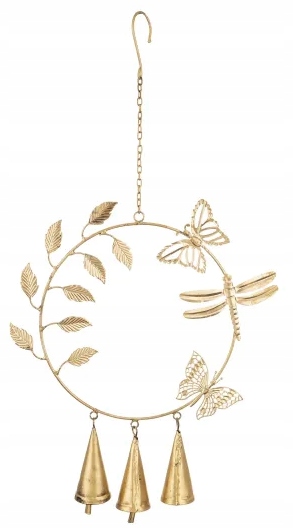DEKORACJA WISZĄCA METALOWA OZDOBNA ZŁOTA DZWONKI 45 x 25 x 3,5 CM