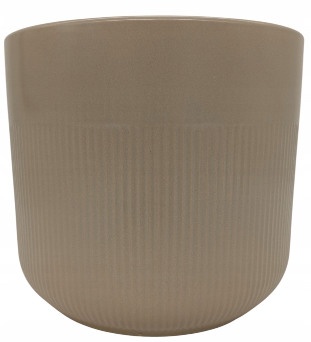 Wykonana z najwyższej jakości ceramiki, w urzekającym beżowym odcieniu, doniczka charakteryzuje się unikalną, pionową strukturą ryflowaną. Ta subtelna faktura nie tylko dodaje jej głębi i trójwymiarowości, ale także pięknie załamuje światło, tworząc dynamiczne cienie i podkreślając jej smukłą sylwetkę. Minimalistyczny, a jednocześnie wyrazisty design sprawia, że idealnie wkomponuje się zarówno w nowoczesne, skandynawskie, jak i klasyczne aranżacje.