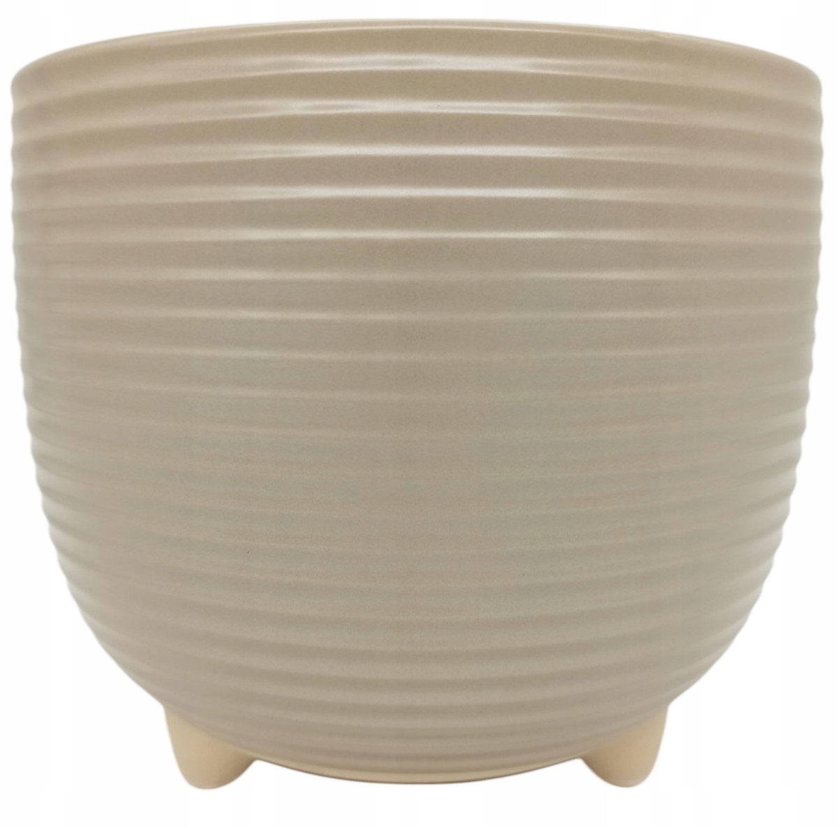 DONICZKA NA NÓŻKACH CERAMICZNA BEŻOWA DRENAŻ RYFLOWANA 14,5 x 16 cm