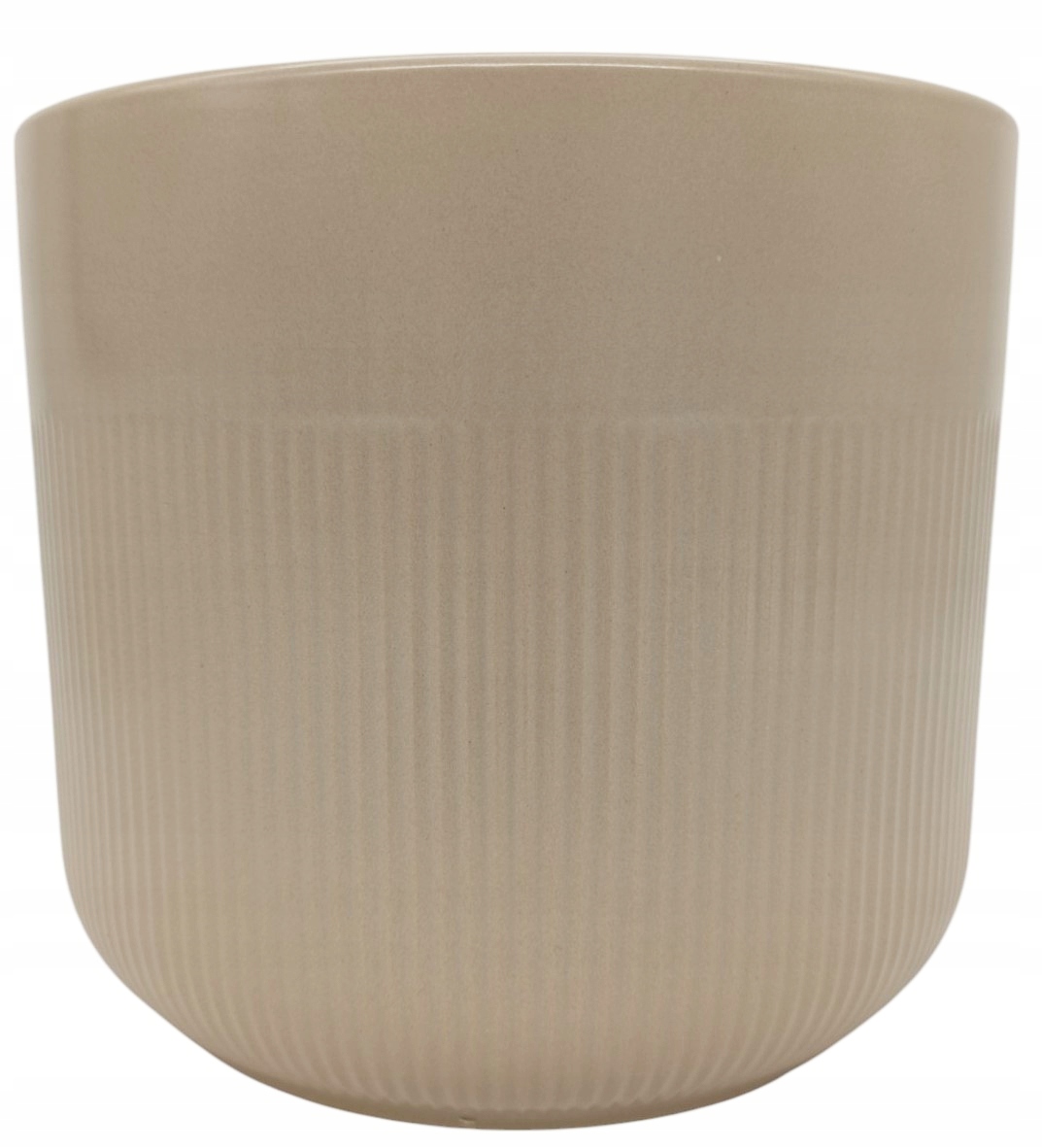 DONICZKA NA KWIATY DO DOMU CERAMICZNA RYFLOWANA BEŻOWA DUŻA 16 x 17,5 cm