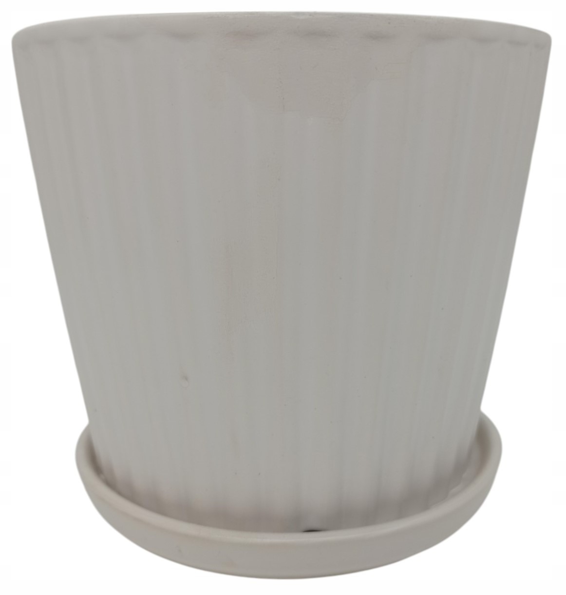 Szukasz idealnego domu dla swoich ulubionych roślin, który połączy w sobie ponadczasową elegancję z funkcjonalnością? Ta piękna ceramiczna doniczka z podstawką to kwintesencja klasyki i naturalnego piękna, zaprojektowana, by harmonijnie wkomponować się w każde wnętrze. Jej subtelny, ryflowany wzór nadaje jej delikatności i wyjątkowego charakteru, podkreślając jednocześnie naturalny urok zieleni.