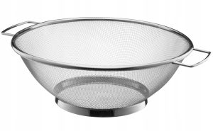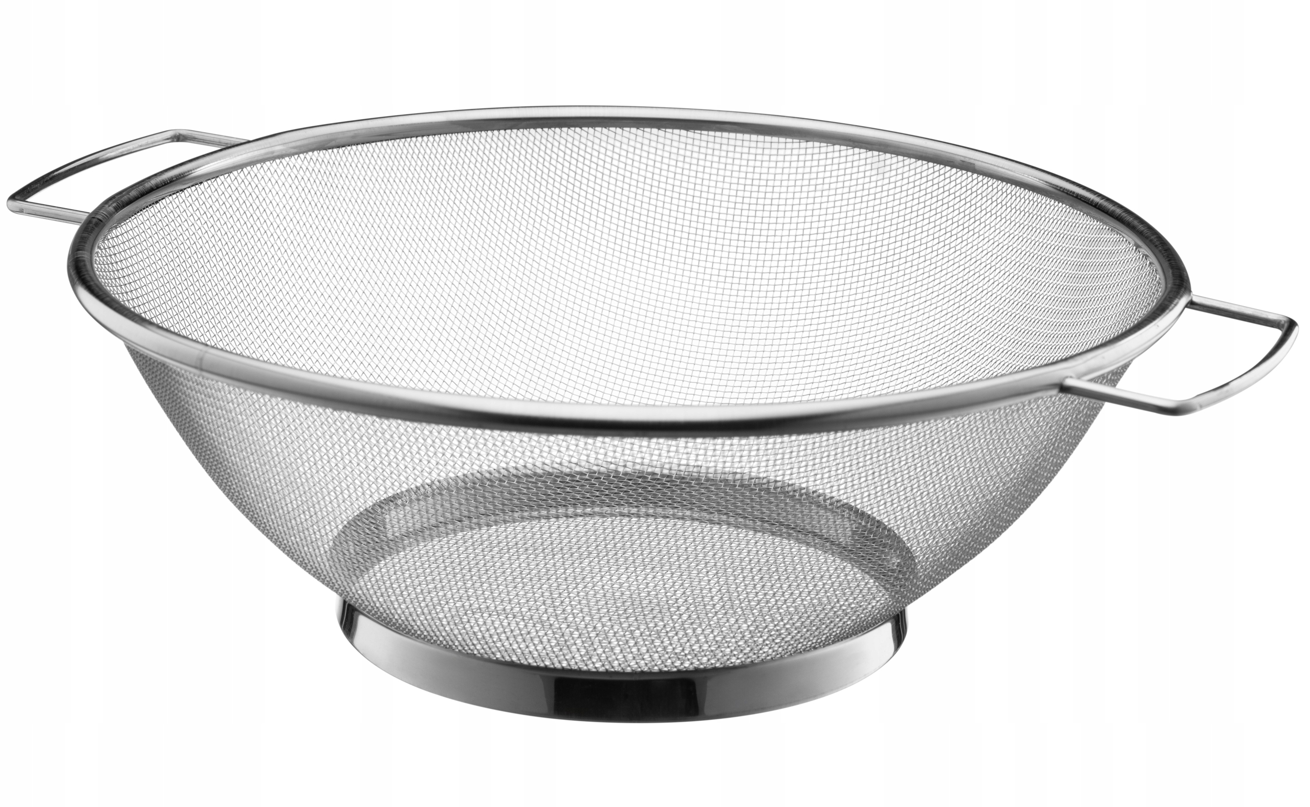 To podstawowy element wyposażenia kuchni musi być wytrzymałe, solidne i wygodne w użytkowaniu. Prezentowane sitko zostało wykonane z wysokiej jakości stali nierdzewnej. Powierzchnia do przecedzania jest bardzo drobna, dlatego jest odpowiednia do wszystkich produktów spożywczych, niezależnie od ich rozmiaru. Sitko posiada dwie wygodne rączki do przenoszenia oraz okrągłą podstawę – dzięki niej możemy swobodnie położyć sitko na blacie lub dnie zlewu. Sitko dzięki dużej średnicy jest bardzo funkcjonalne i pomocne przy codziennym gotowaniu.