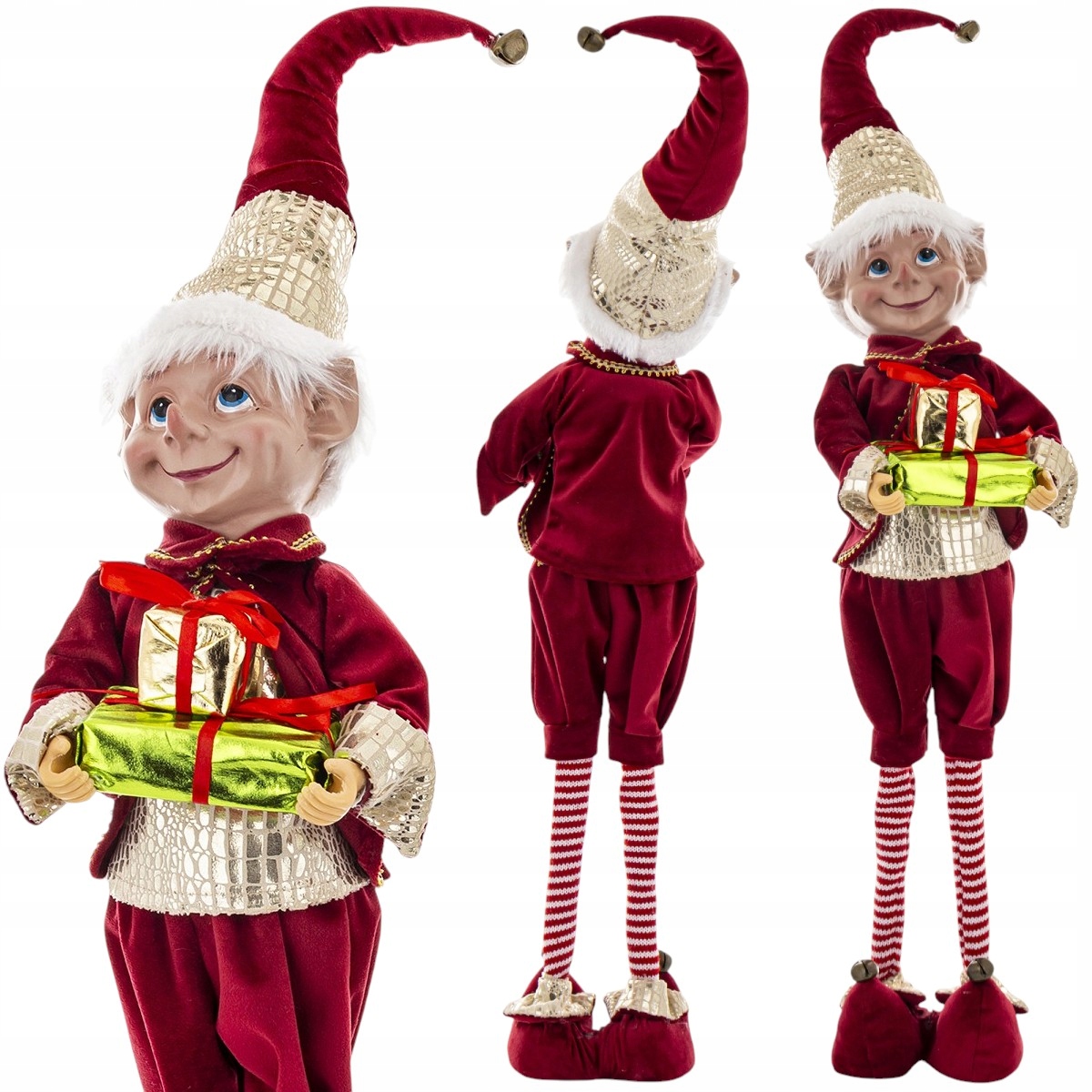 ELF ŚWIĄTECZNY FIGURKA NA TELESKOPOWYCH NOGACH OZDOBA DEKORACJA 72 CM