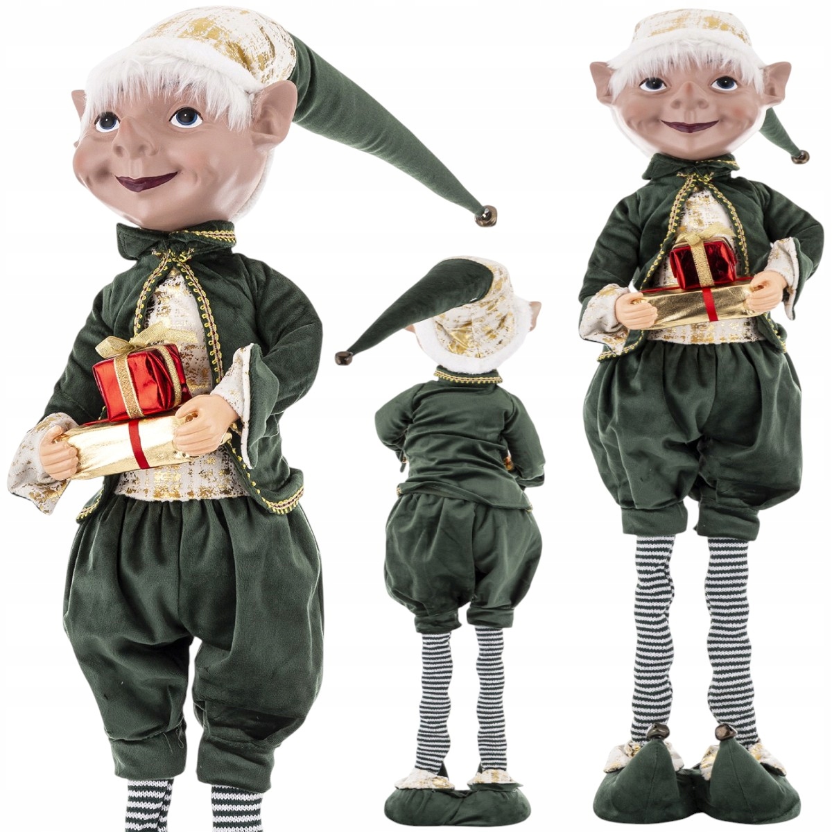 ELF ŚWIĄTECZNY FIGURKA NA TELESKOPOWYCH NOGACH OZDOBA DEKORACJA 81 CM