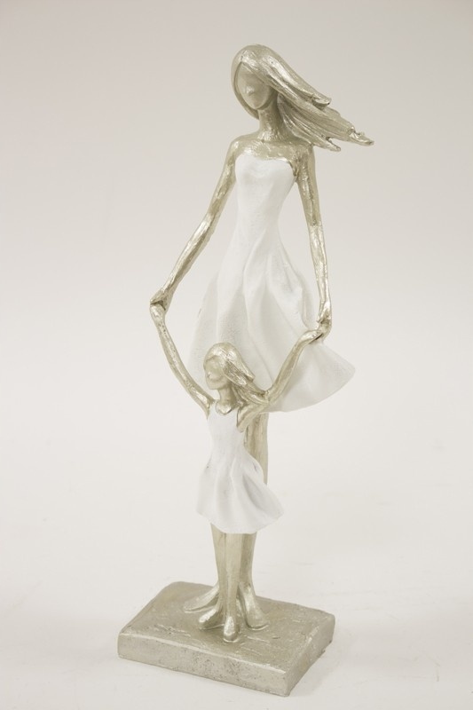 Figurka mamy z córką to wyjątkowa dekoracja, która doskonale wzbogaci każdą kolekcję. Starannie wykonana z wysokiej jakości materiału, zachwyca imponującym wyglądem i dbałością o detale. Dzięki swoim wymiarom idealnie sprawdzi się w roli ozdoby na półce, komodzie lub w witrynie.