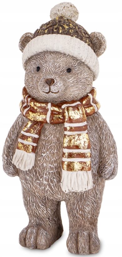 Oto figurka, która natychmiast wywoła ciepły uśmiech na twarzy każdego! Ten uroczy, stojący miś to idealny symbol świątecznej radości, miłości i obdarowywania prezentami.
