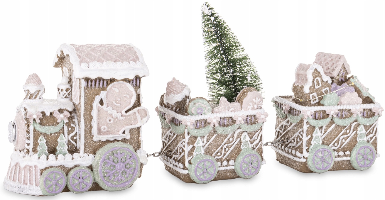 FIGURKA POCIĄG ŚWIĄTECZNY PIERNIKOWY LED WAGONY Z OŚWIETLENIEM 13×29,5×7 CM