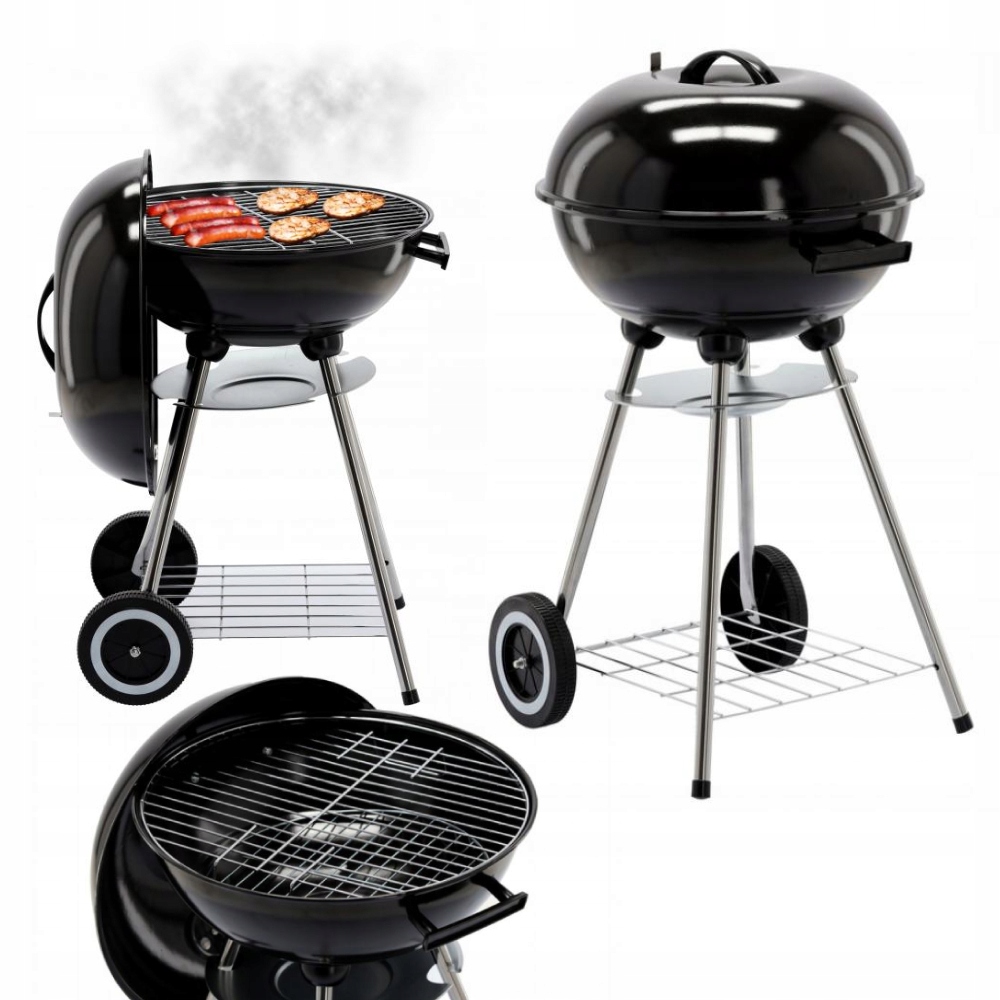 GRILL OGRODOWY WĘGLOWY Z POKRYWĄ NA KÓŁKACH OKRĄGŁY POPIELNIK PÓŁKA KULISTY