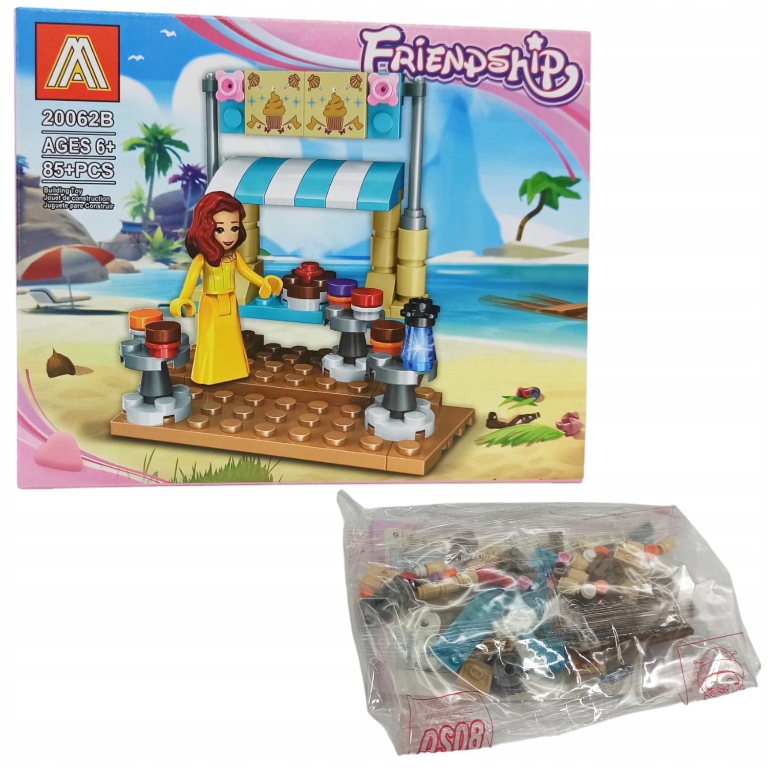Zestaw klocków „Friendship” to brama do nieskończonych możliwości kreowania własnych, plażowych scenariuszy. Zbuduj urokliwy kiosk z pysznościami, gdzie uśmiechnięta bohaterka serwuje lody, babeczki i orzeźwiające napoje. Wyobraź sobie wesołe rozmowy, nowe znajomości i niezapomniane momenty spędzane pod palmami. Ten zestaw to nie tylko klocki – to zaproszenie do świata radosnej zabawy, gdzie każda zbudowana konstrukcja staje się tłem dla nowych, fantastycznych opowieści! Doskonały do samodzielnej zabawy oraz wspólnego budowania z przyjaciółmi czy rodzeństwem.
