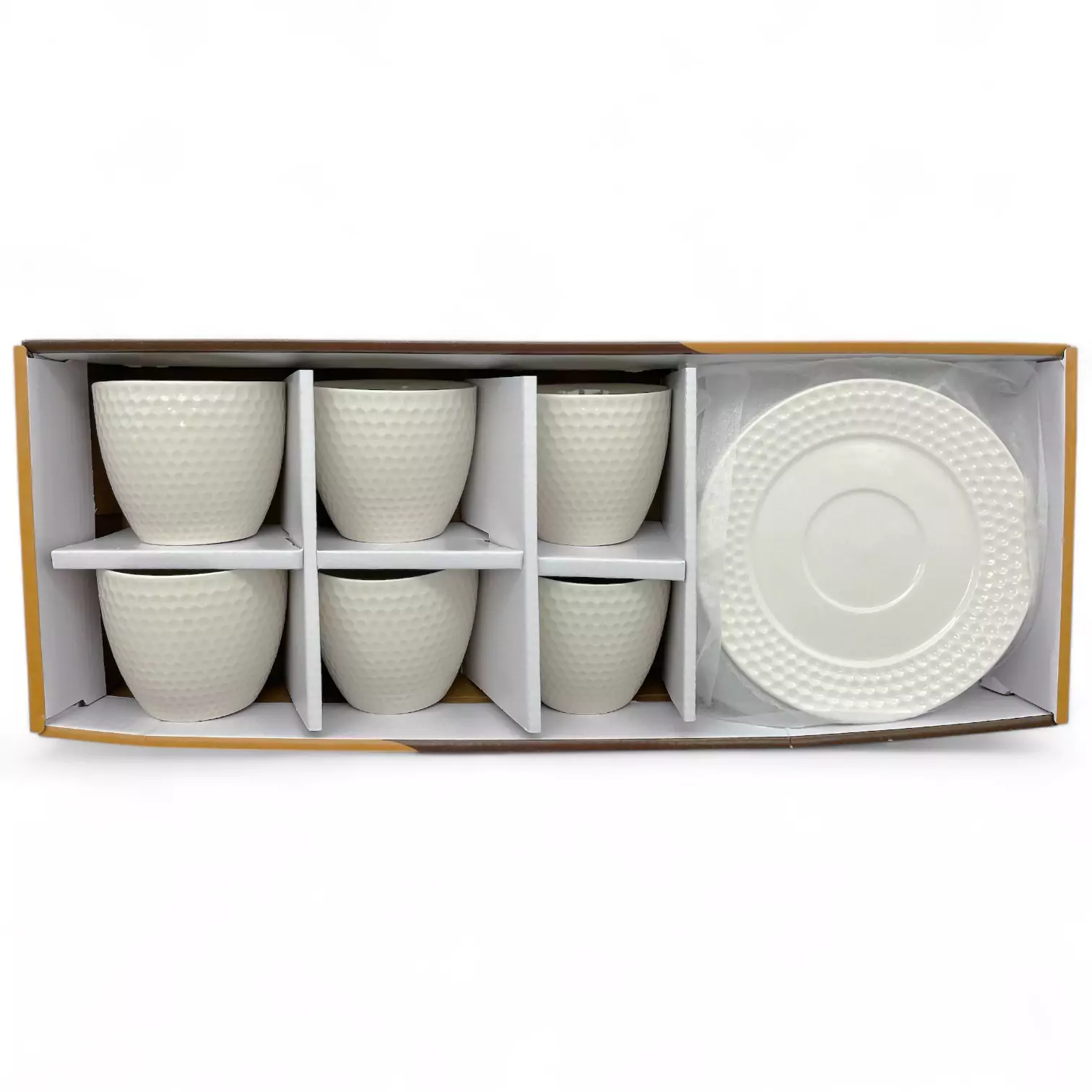 Każda filiżanka to małe dzieło sztuki, stworzone z myślą o wyjątkowych chwilach. Standardowe wymiary idealnie nadają się do serwowania aromatycznej kawy. Subtelny jasno kremowy odcień podkreśla elegancję, a trwałość ceramiki zapewnia, że filiżanki będą cieszyć oko przez długie lata. To idealny towarzysz Twoich codziennych rytuałów, który doda szyku każdej chwili!