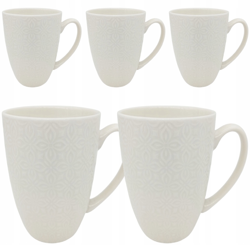 Przedstawiamy zestaw pięciu przepięknych, białych kubków, które odmienią każdą chwilę z ulubionym napojem. Te eleganckie kubki to kwintesencja stylu i funkcjonalności, idealne do serwowania kawy, herbaty, kakao czy innych gorących i zimnych napojów. Ich subtelny, geometryczny wzór dodaje im unikalnego charakteru, sprawiając, że staną się ozdobą każdego stołu i wnętrza.