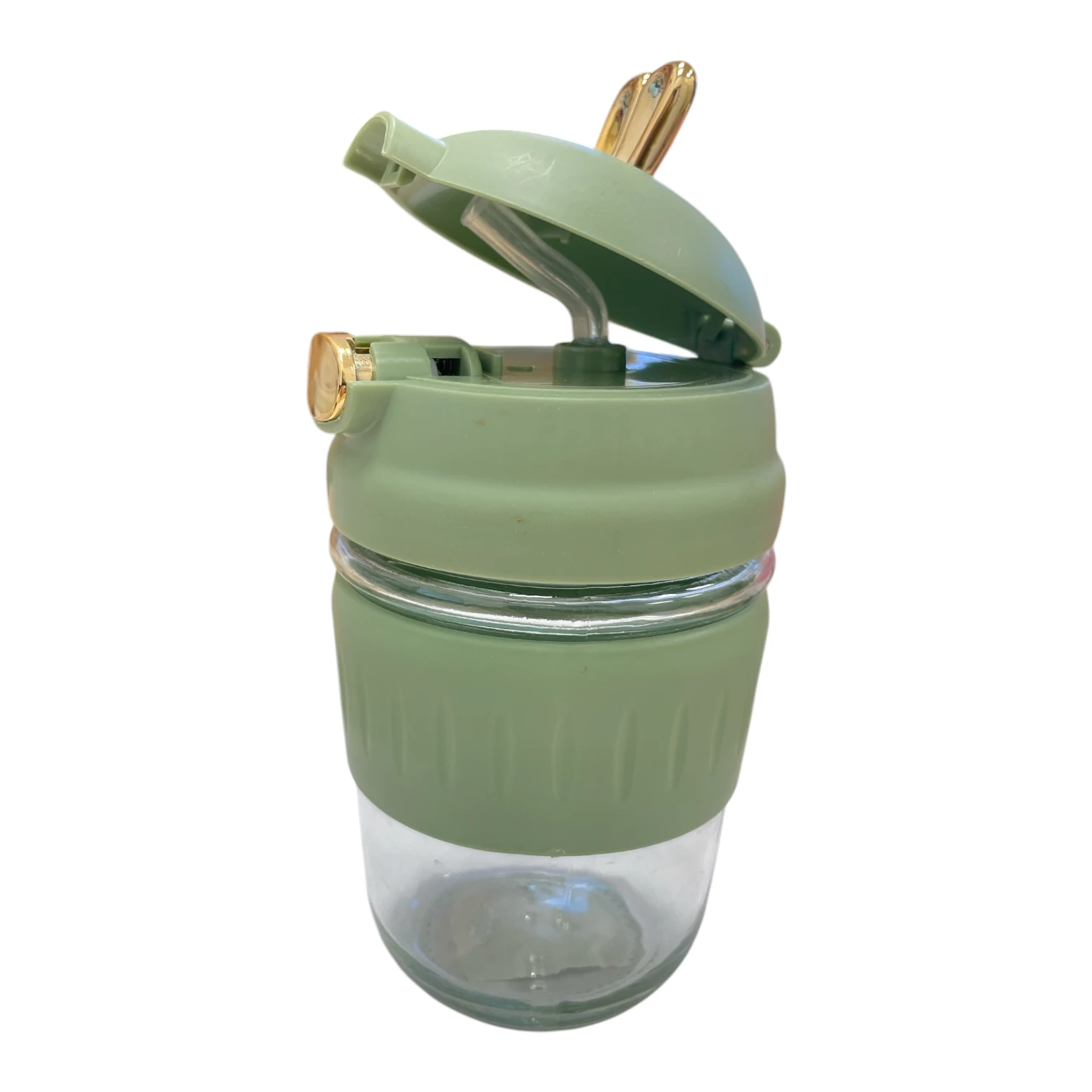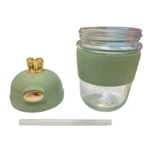 Odkryj kubek, który zmienia sposób, w jaki pijesz ulubione napoje! Pokrywka z zatrzaskiem chroni przed rozlaniem i jest ozdobiona złotymi uszkami, które przyciągają wzrok. Każdy łyk będzie przyjemnością, gdy korzystasz z elegancji tego szklanego dzieła sztuki.