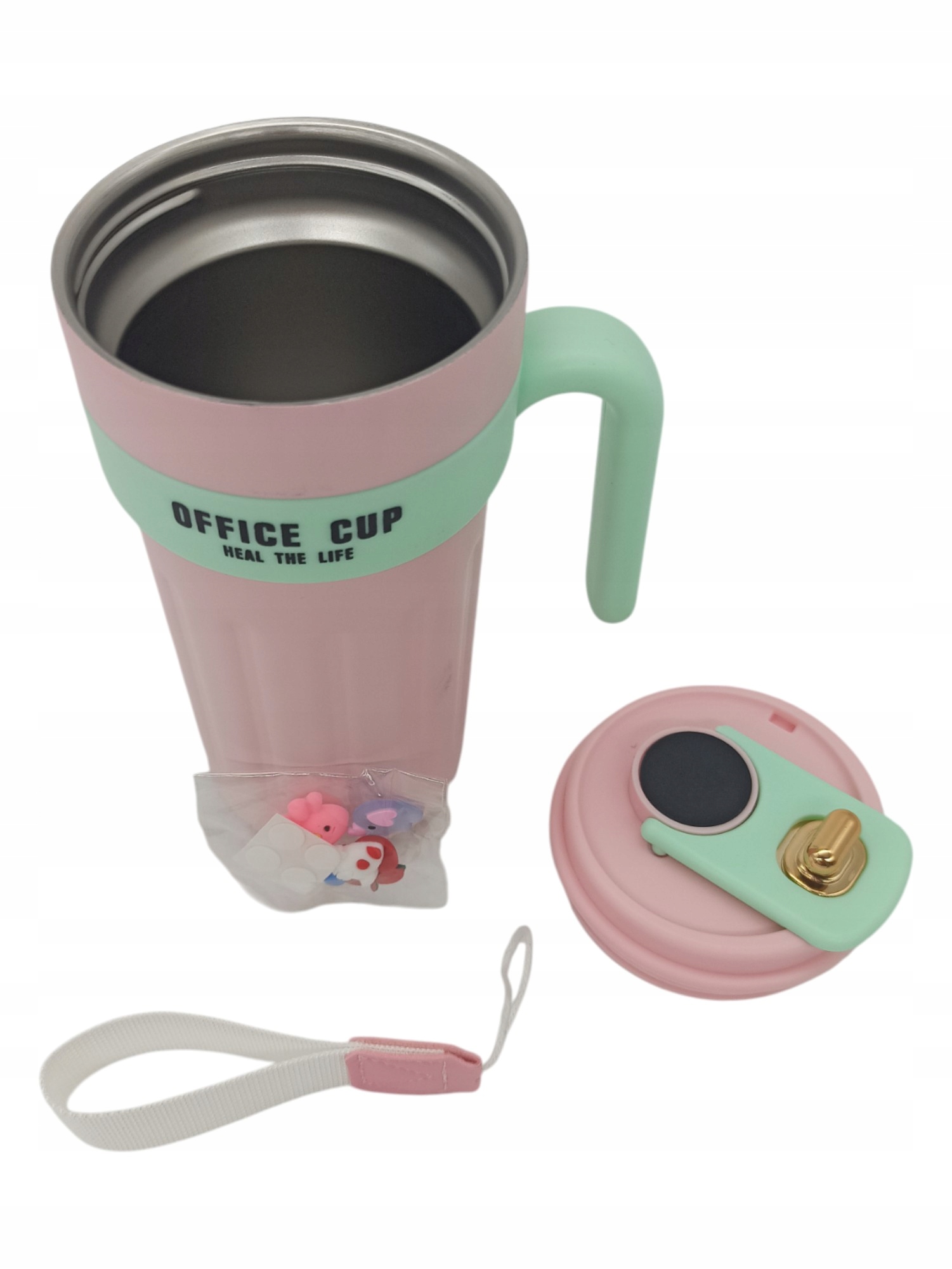 Imponująca pojemność 650 ml pozwoli Ci cieszyć się kawą, herbatą, a nawet ulubionym koktajlem przez wiele godzin. Kubek został wykonany z wysokiej jakości stali nierdzewnej, co gwarantuje długotrwałe utrzymanie temperatury i odporność na uszkodzenia. Jego nowoczesny design, uzupełniony o minimalistyczną grafikę „OFFICE CUP”, sprawia, że idealnie pasuje zarówno do biura, jak i na uczelnię czy podczas podróży.