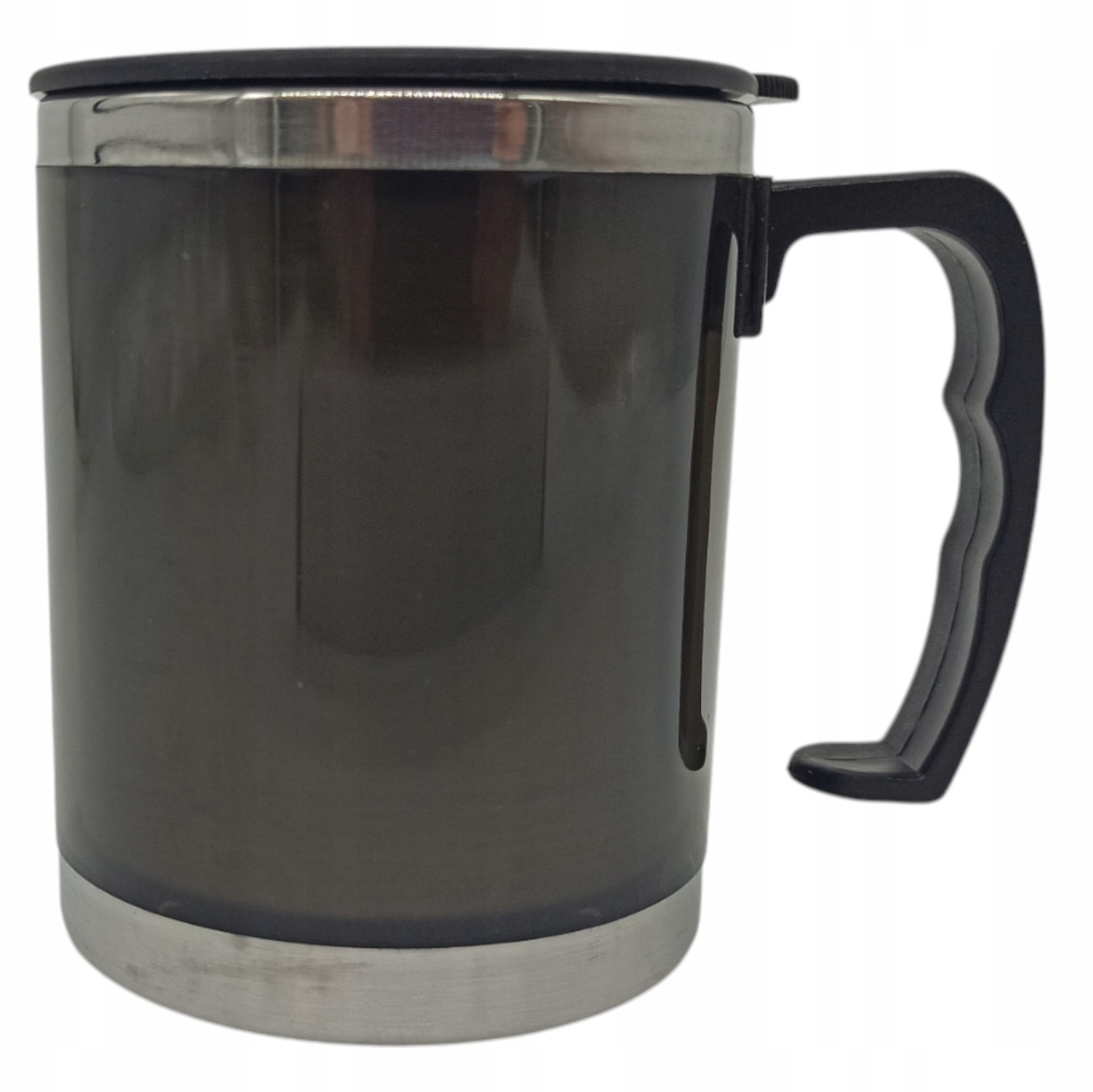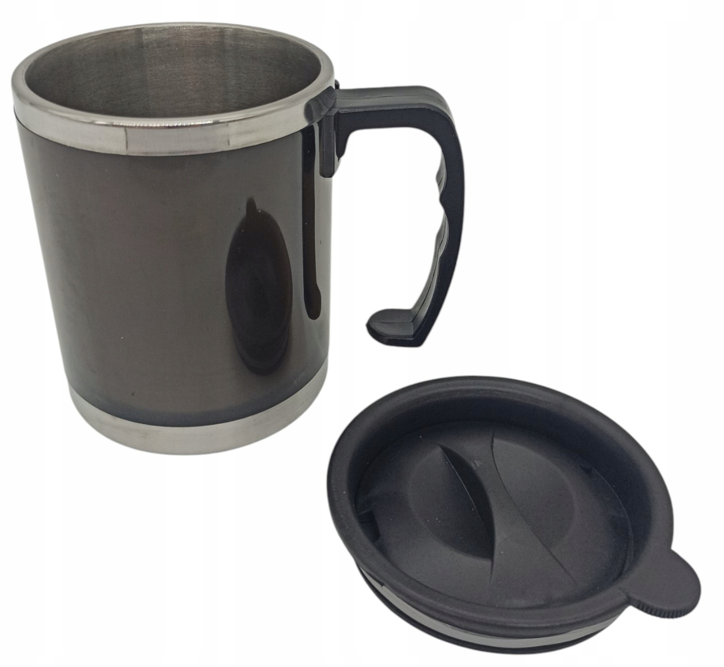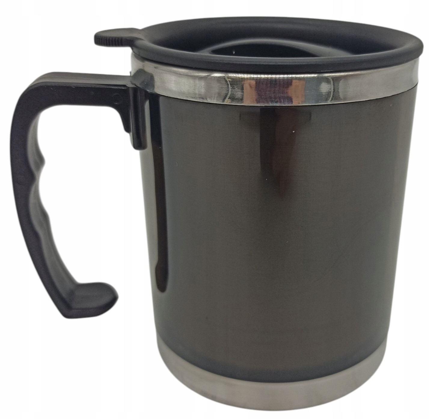 KUBEK TERMICZNY Z POKRYWKĄ I UCHEM PODRÓŻNY KAWY HERBATY GRAFIT 450 ML
