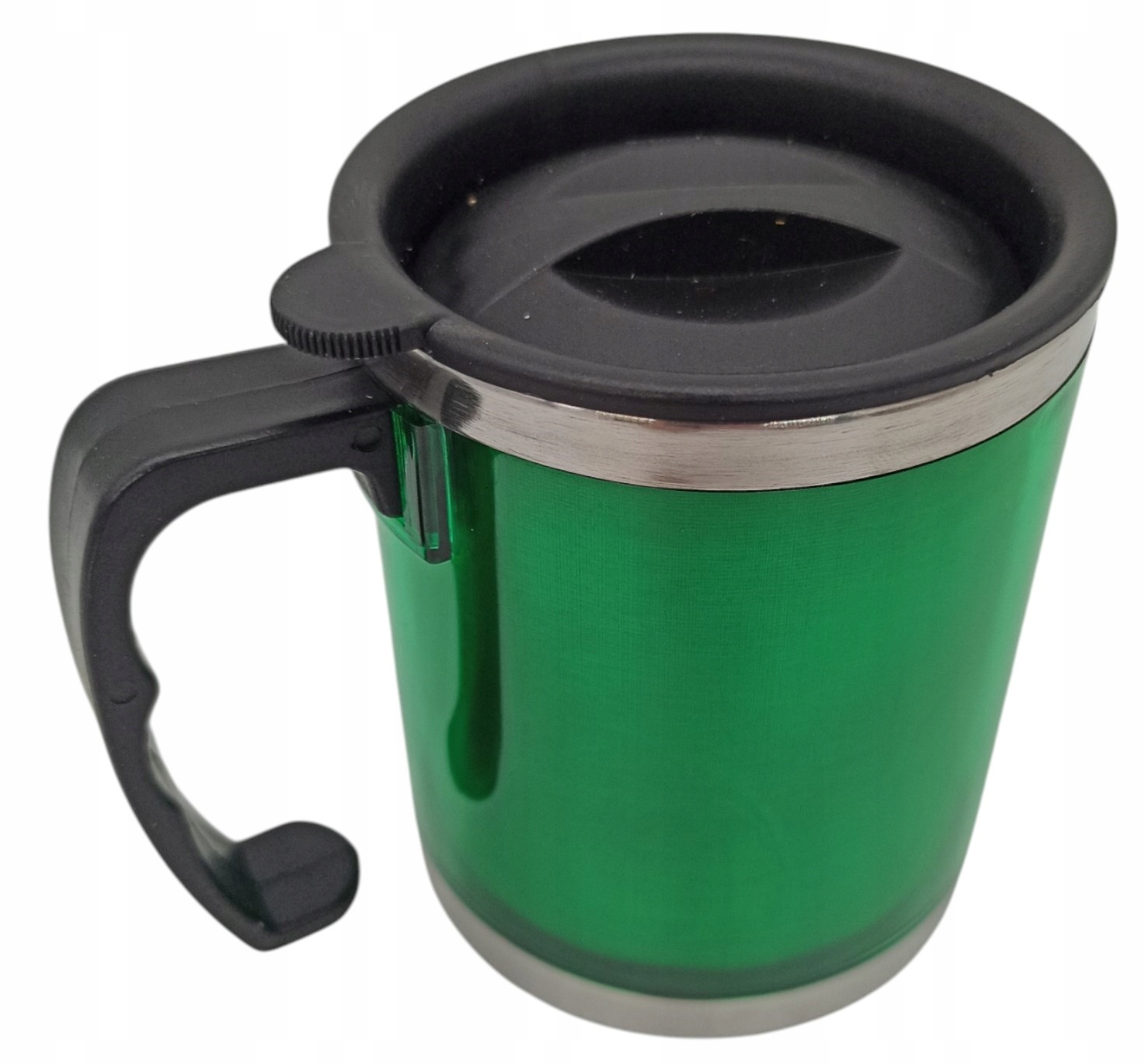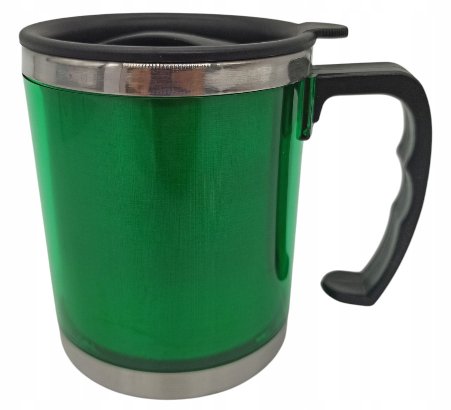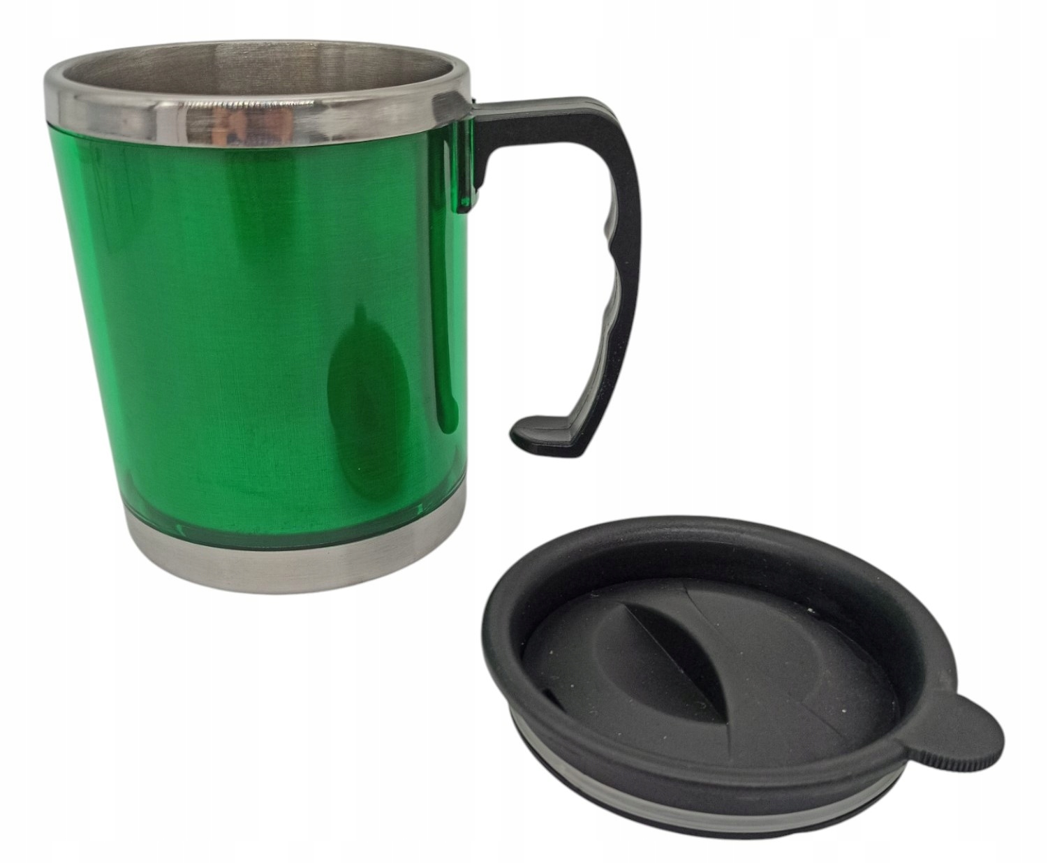 KUBEK TERMICZNY Z POKRYWKĄ I UCHEM PODRÓŻNY KAWY HERBATY ZIELONY450 ML