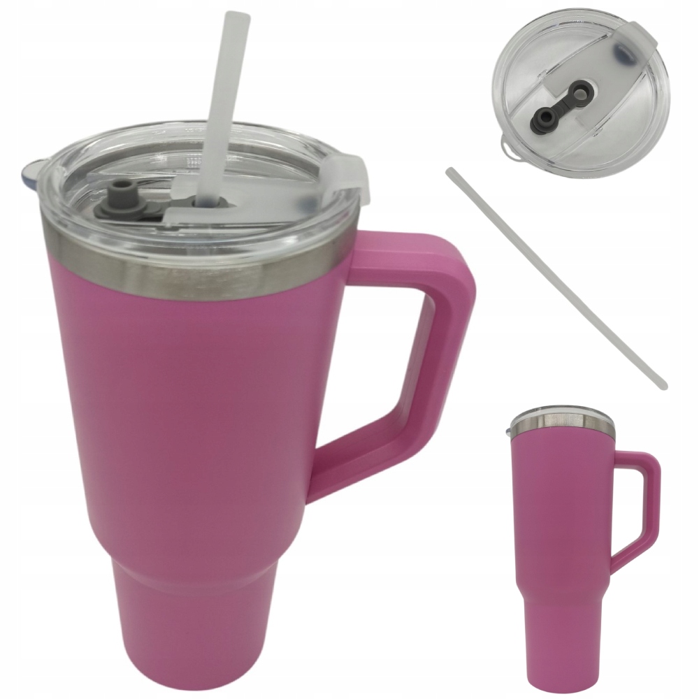 KUBEK TERMICZNY ZE SŁOMKĄ I UCHWYTEM POJEMNY TERMOS DO KAWY HERBATY 1.1L