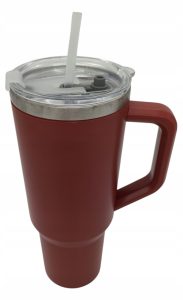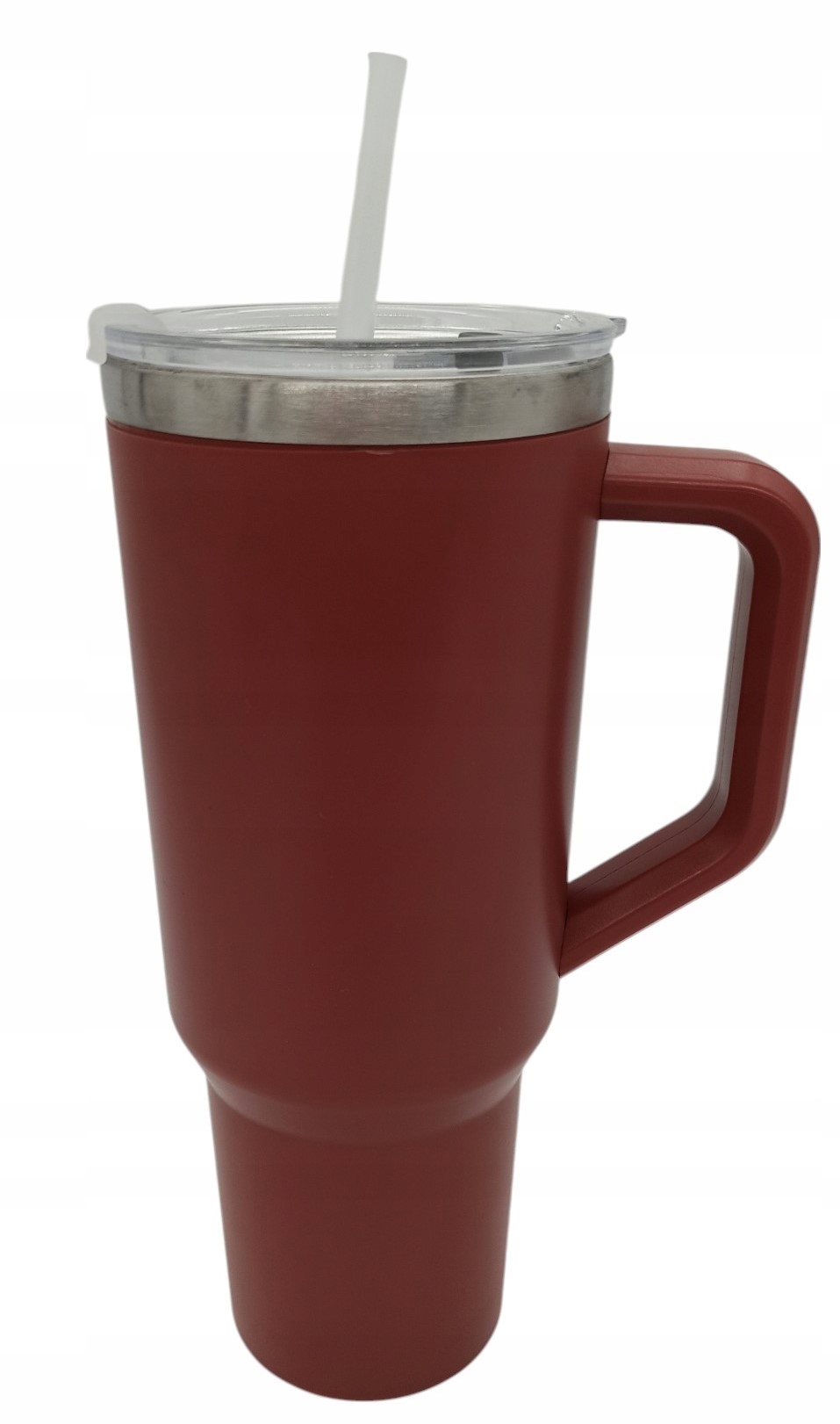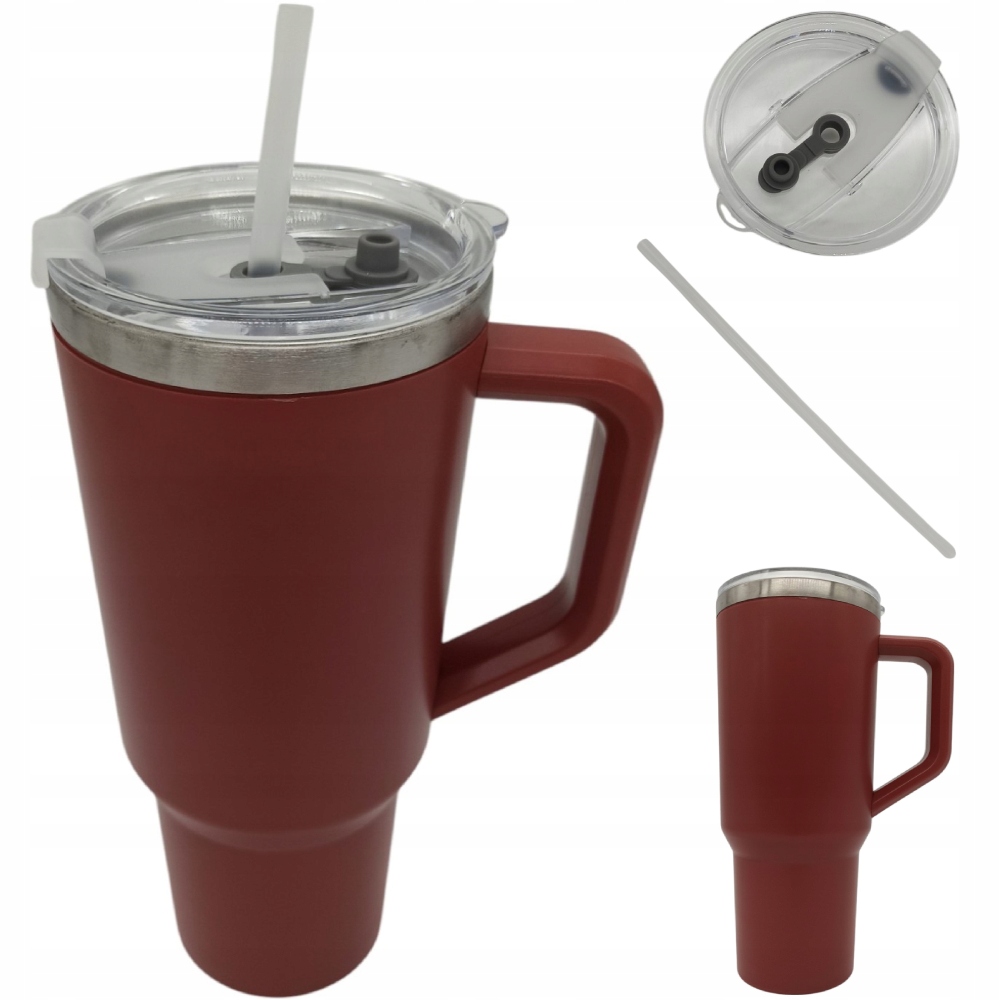 KUBEK TERMICZNY ZE SŁOMKĄ I UCHWYTEM POJEMNY TERMOS DO KAWY HERBATY 1.1L