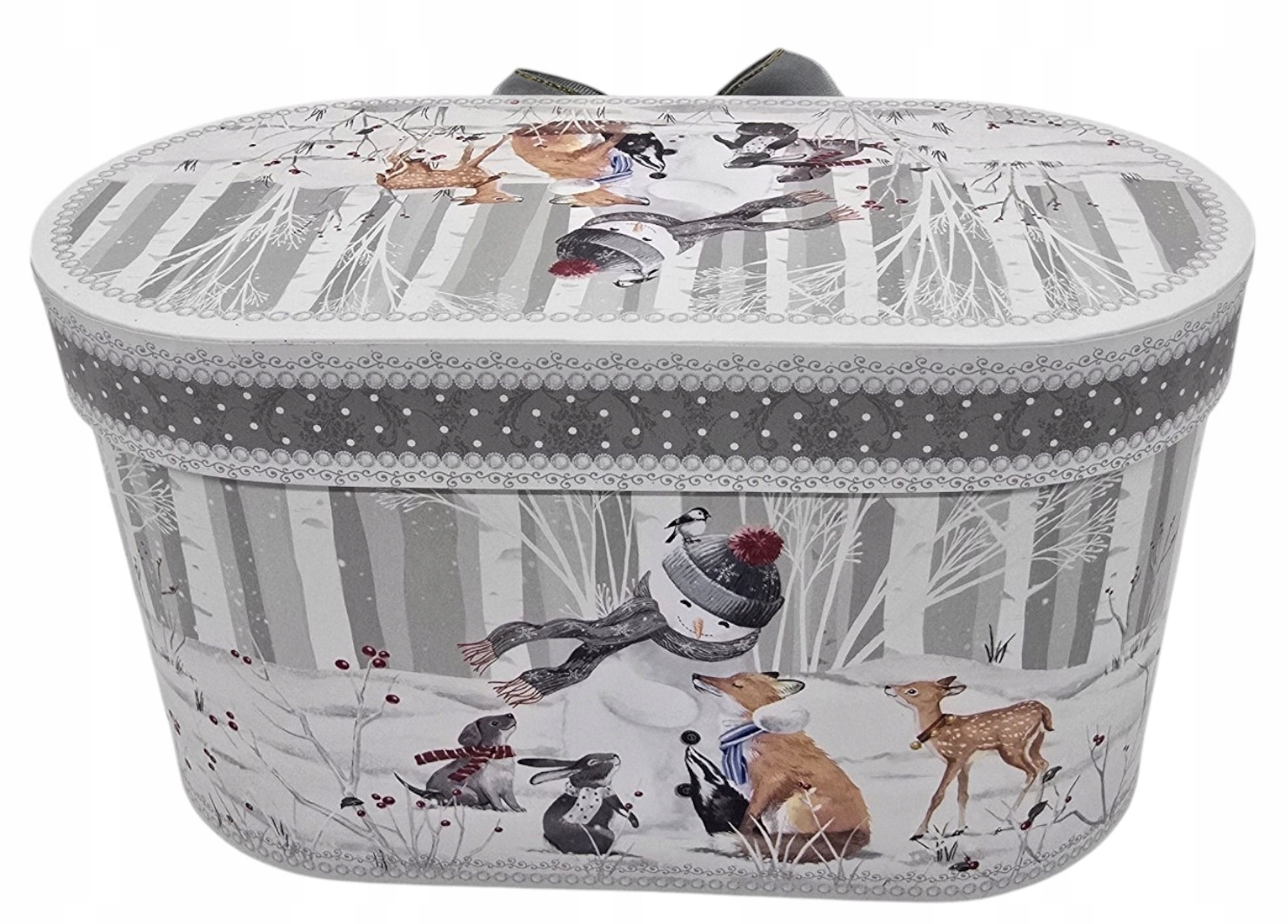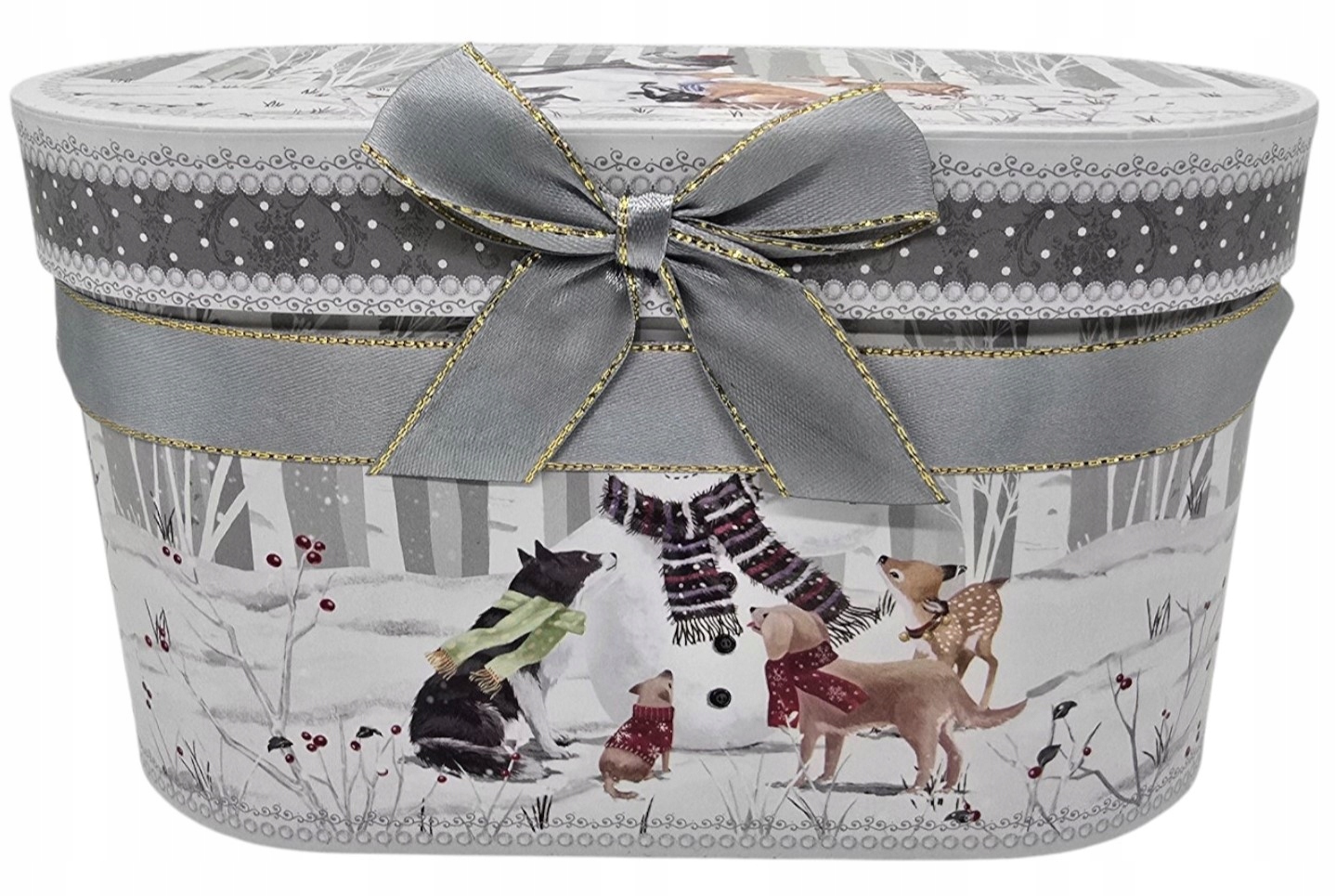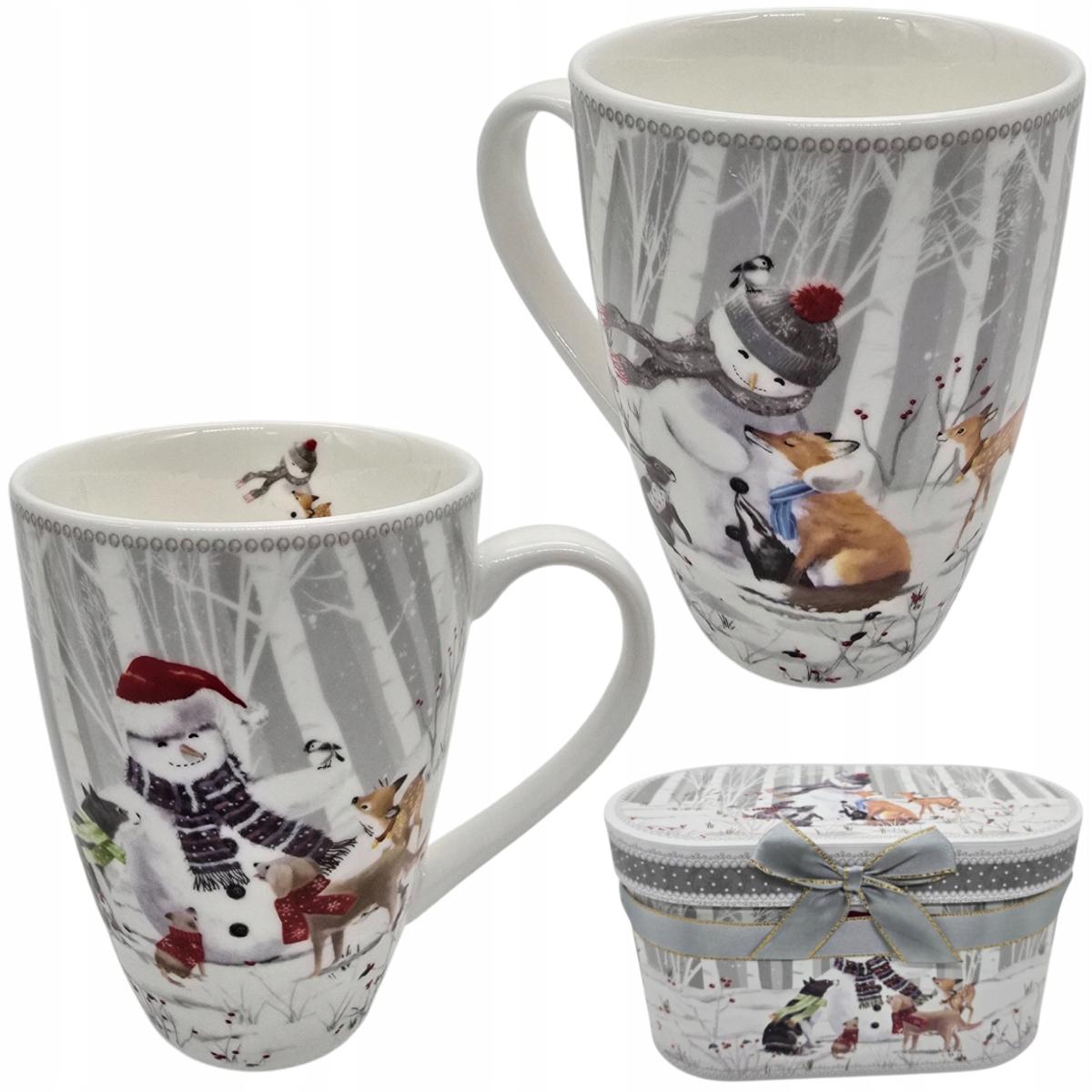 A co najważniejsze? Całość zapakowana jest w ekskluzywne, owalne pudełko kartonowe, ozdobione tym samym motywem i przewiązane elegancką, szarą kokardą. Ten zestaw jest gotowy do wręczenia i z pewnością zachwyci każdego obdarowanego – miłośnika zwierząt, zimowych klimatów i pięknych przedmiotów.