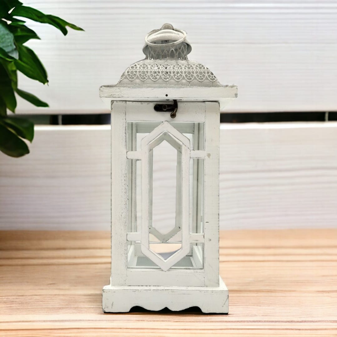Lampion drewniany biały 40cm x 16cm x 16cm – piękne i unikalne oświetlenie do Twojego wnętrza