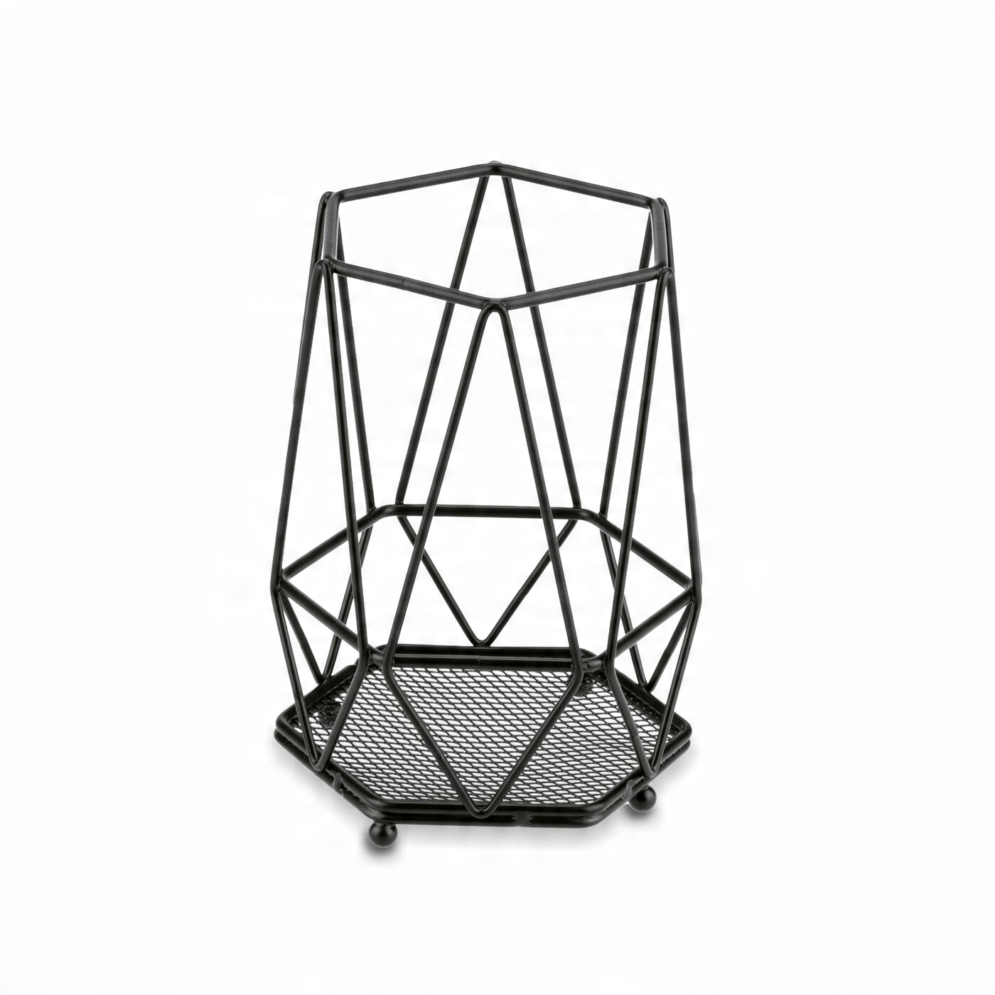 Czarny ociekacz na sztućce Tadar Deco 12 x 11 x 16,5 cm umożliwia skuteczne suszenie sztućców. Ma też dobry sposób na odprowadzanie wody. Dzięki temu zadbasz o porządek na blacie. Jedna komora daje okazję do swobodnego uporządkowania sztućców przy zmywaniu. Wykonanie z metalowego drutu malowanego proszkowo daje pewność trwałości. Zmieści się w nim rodzinny komplet sztućców. Produkt nadaje się również do suszenia przyborów kuchennych jak np. łopatki drewniane do mięsa. Suszone w nim sztućce będą miały higieniczne warunki. Ociekacz łatwo też zachować w czystości. Jego design jest nowoczesny, ponieważ wykorzystuje geometryczny motyw dekoracyjny.