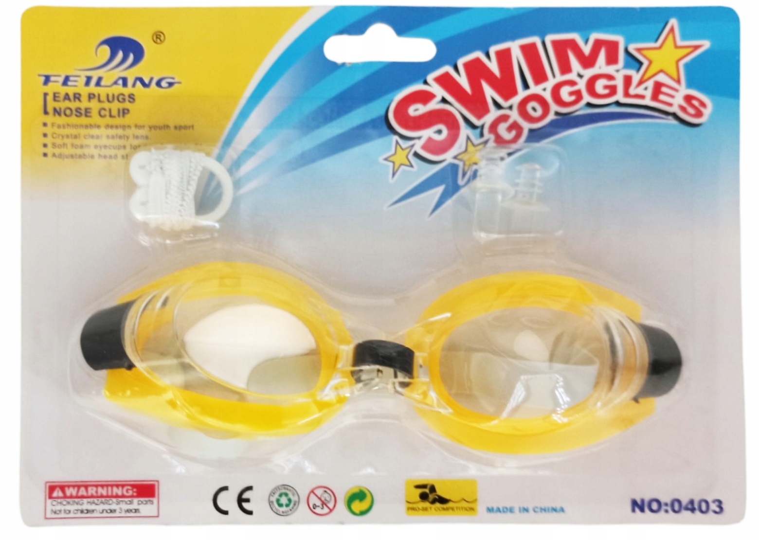OKULARY PŁYWACKIE DO PŁYWANIA ZATYCZKI NOS KLIPS PROFESJONALNE ŻÓŁTE