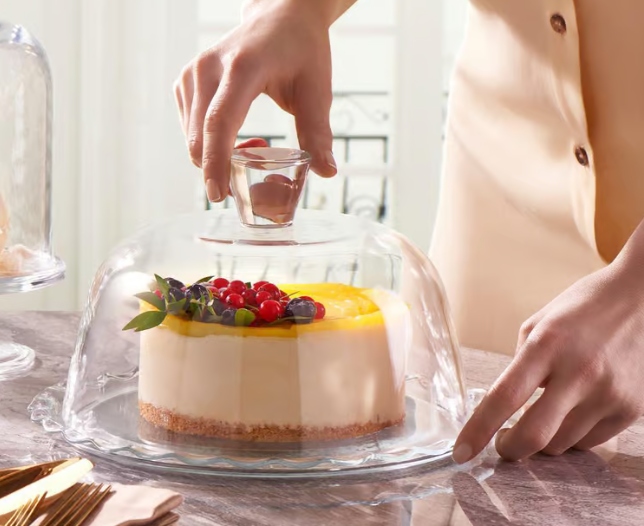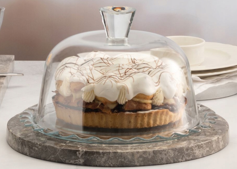 Będzie ciekawym uzupełnieniem zastawy stołowej, a dodatkowo pięknie wyeksponuje każdy deser. Patera posiada klosz, dzięki czemu uchroni wypieki przed wysychaniem lub owadami w okresie letnim.