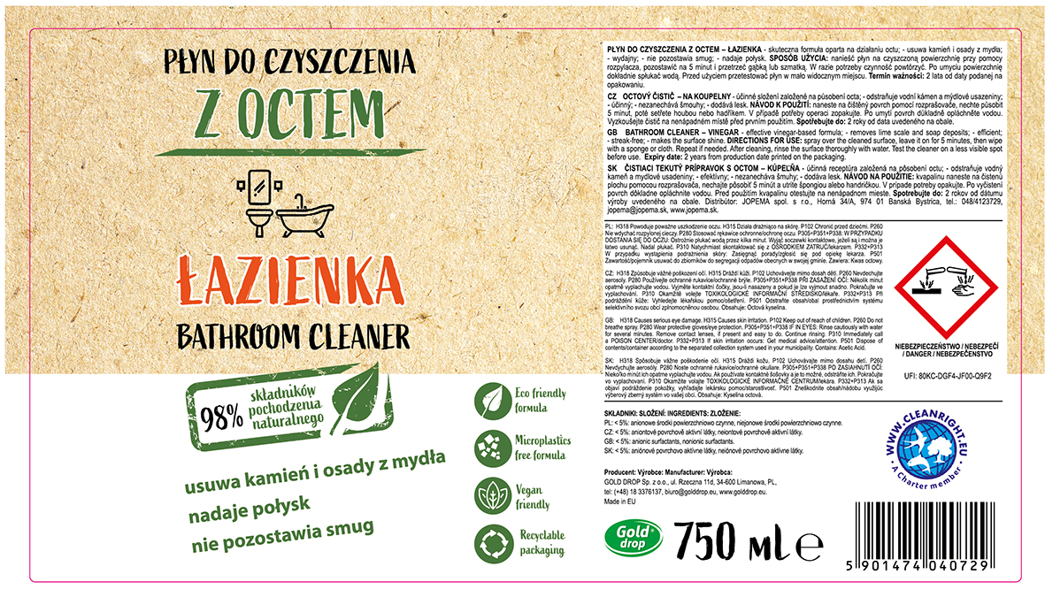 Firma Gold Drop przygotowała nowość jaką jest seria produktów naturalnych do czyszczenia na bazie octu. W skład jej wchodzą trzy produkty: