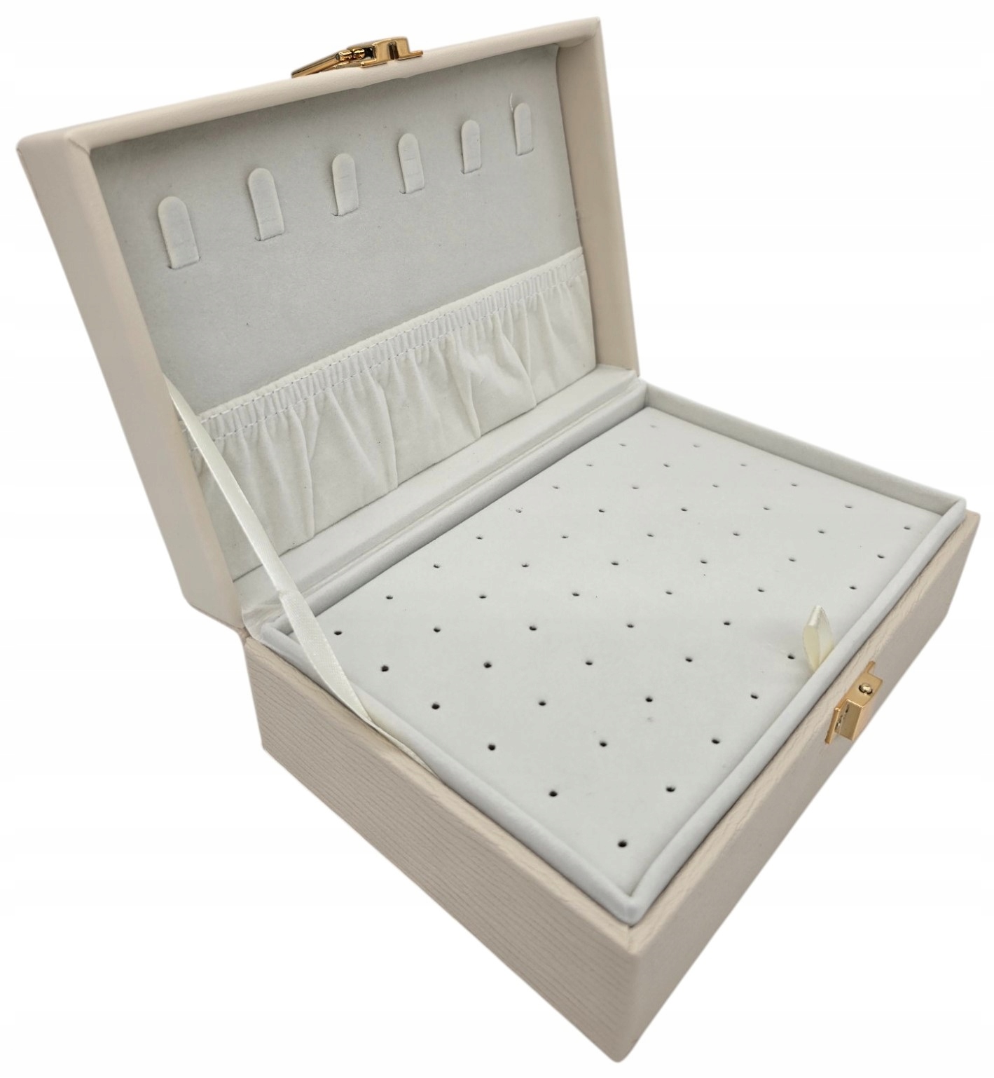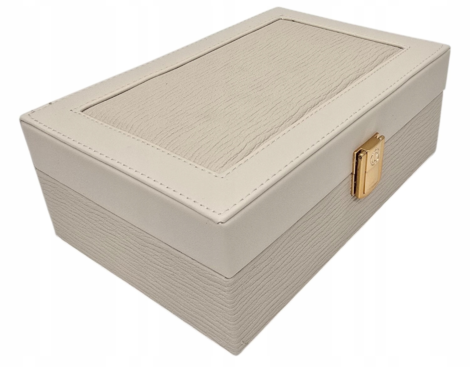 PUDEŁKO SZKATUŁKA NA BIŻUTERIĘ KUFEREK DUŻY ORGANIZER BEŻOWE 20 x 14 x 8 cm