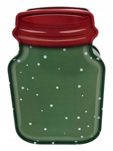 - Kształt i Design: Unikatowy kształt stylizowany na słoik, z nakrętką w zielono-białe pasy.