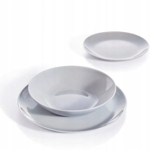 Zastawa obiadowa Diwali Granit marki Liminarc. Komplet obejmuje 6 talerzy głębokich, 6 talerzy obiadowych oraz 6 talerzyków deserowych. Serwis obiadowy Luminarc został zaprojektowany dla klientów ceniących najnowsze trendy. Komplet obiadowy ma prosty, współczesny design. Talerze są okrągłe i nie posiadają zdobień, zamiast jednak standardowej, białej barwy, są w intrygującym, szarym kolorze.