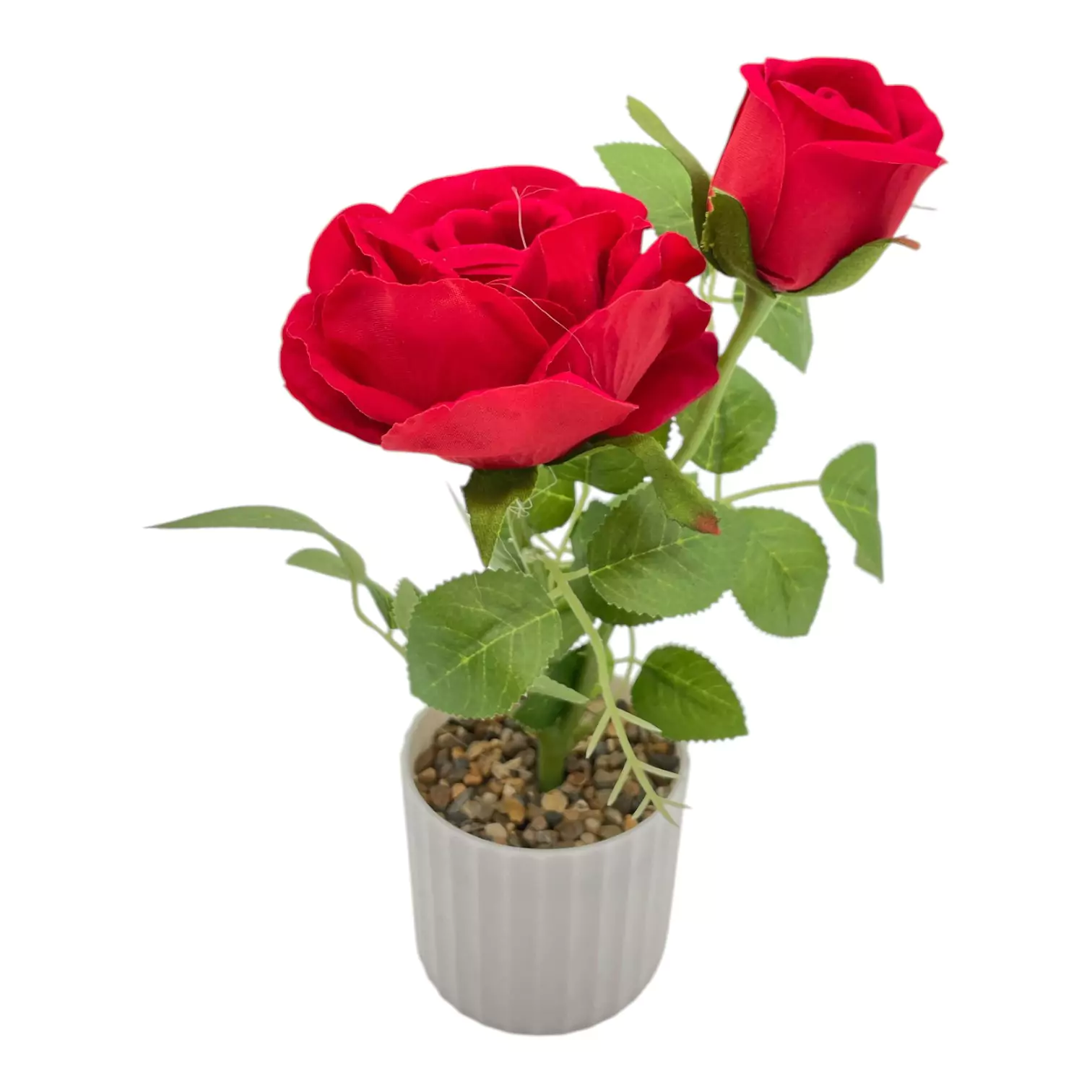 Sztuczny kwiat Róża w doniczce 29cm, Czerwona