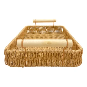Taca z technorattanu to praktyczne uzupełnienie każdego wnętrza. Jej rozmiar 30×20 cm pozwala na eleganckie podanie kilku filiżanek kawy lub śniadania do łóżka. Solidne wykonanie i odporny materiał sprawiają, że jest to wybór idealny na co dzień. Zdecyduj się na rozwiązanie, które łączy nowoczesność i trwałość w codziennym użytkowaniu.