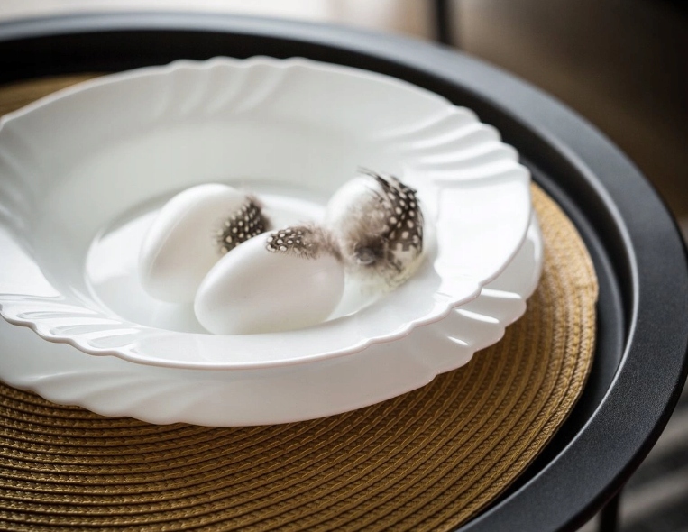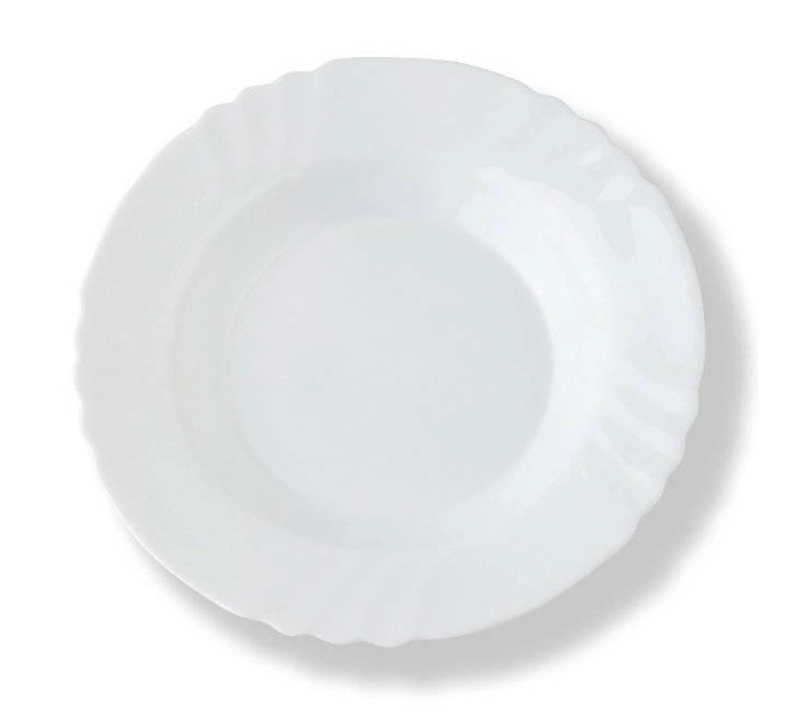 Klasyczna biel talerza głębokiego Ebro będzie się elegancko prezentowała w każdej aranżacji. Delikatne tłoczenia dopełniają całości tworząc niepowtarzalny wzór na brzegu talerza. Może on budzić skojarzenia z muszlą lub płatkami kwiatu.