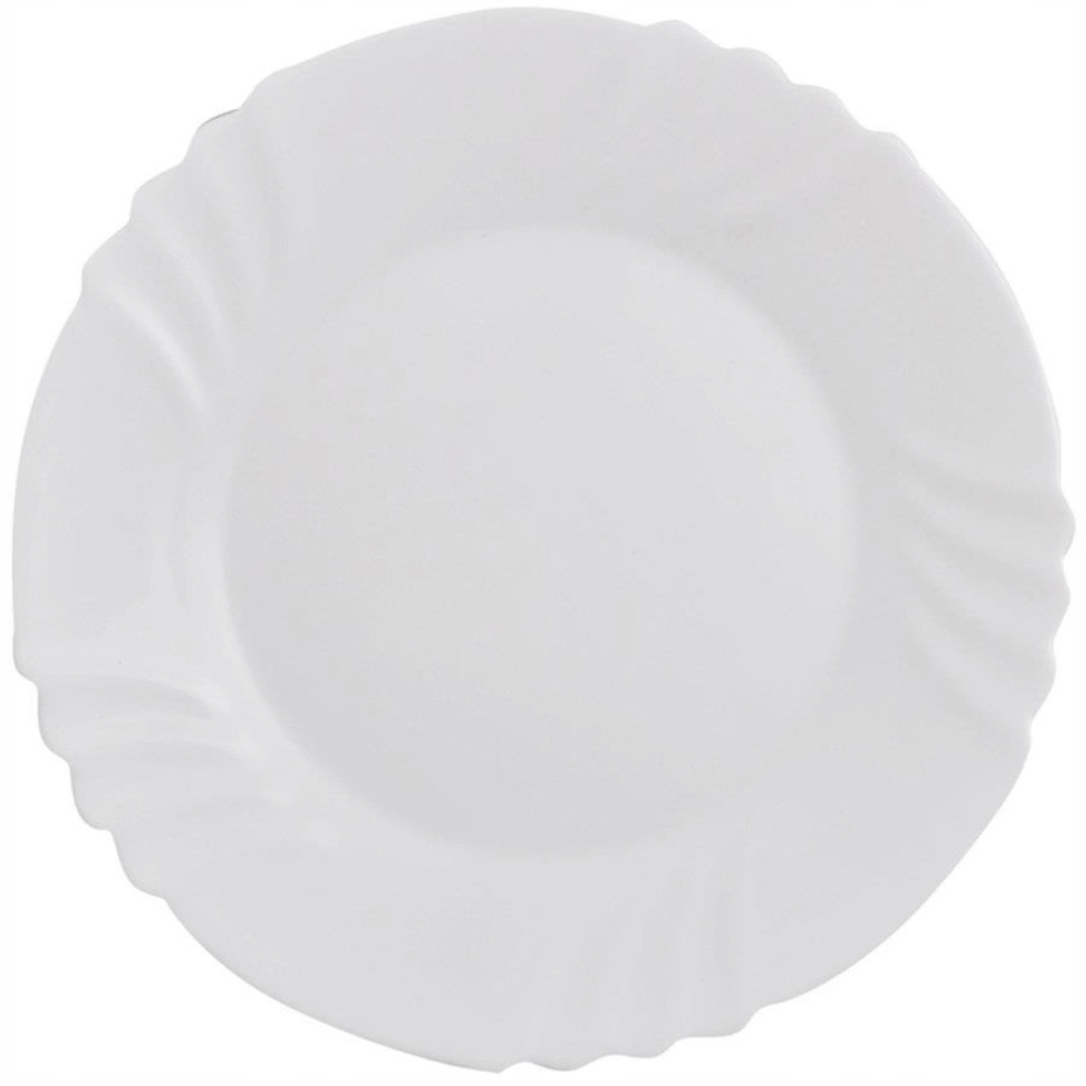 Klasyczna biel talerza deserowego Ebro będzie się elegancko prezentowała w każdej aranżacji. Delikatne tłoczenia dopełniają całości tworząc niepowtarzalny wzór na brzegu talerza. Może on budzić skojarzenia z muszlą lub płatkami kwiatu.
