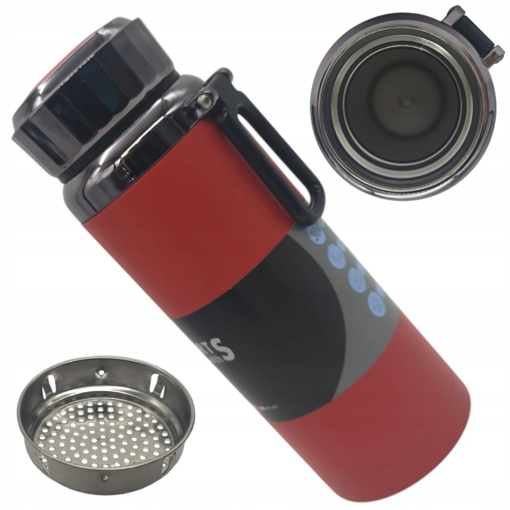 TERMOS BIDON STAL NIERDZEWNA ZAPARZACZ SITKO NA KAWĘ HERBATĘ CZERWONY 800ML