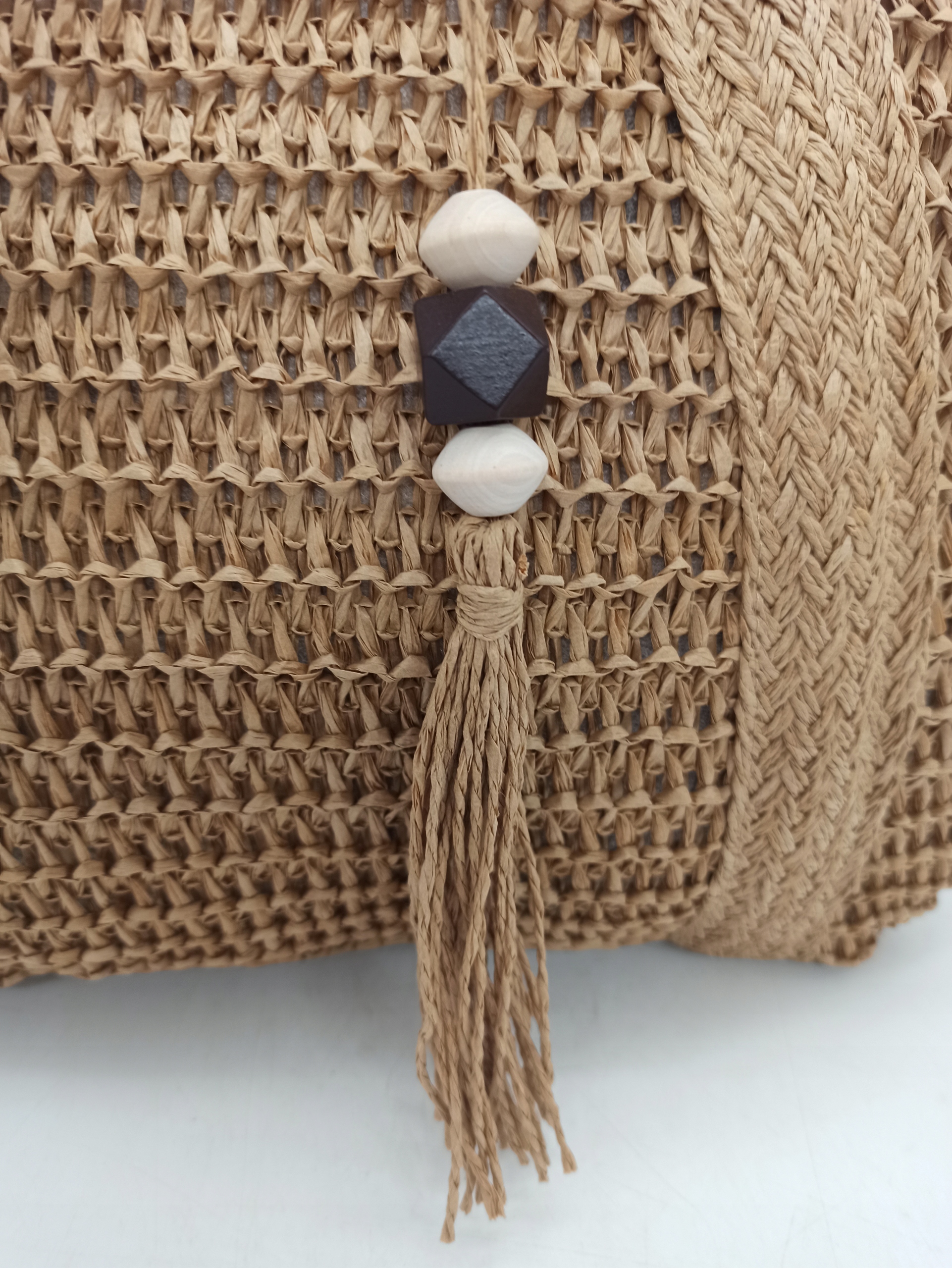 Subtelne, koraliki i fantazyjny chwost dodają torebce unikalnego charakteru, podkreślając jej etniczny i naturalny styl. Długie, wygodne rączki pozwalają na komfortowe noszenie na ramieniu, nawet gdy torba jest w pełni obciążona. Wewnątrz znajdziesz praktyczną kieszonkę – idealną na telefon, klucze czy szminkę, dzięki czemu zawsze będziesz mieć pod ręką najważniejsze przedmioty.