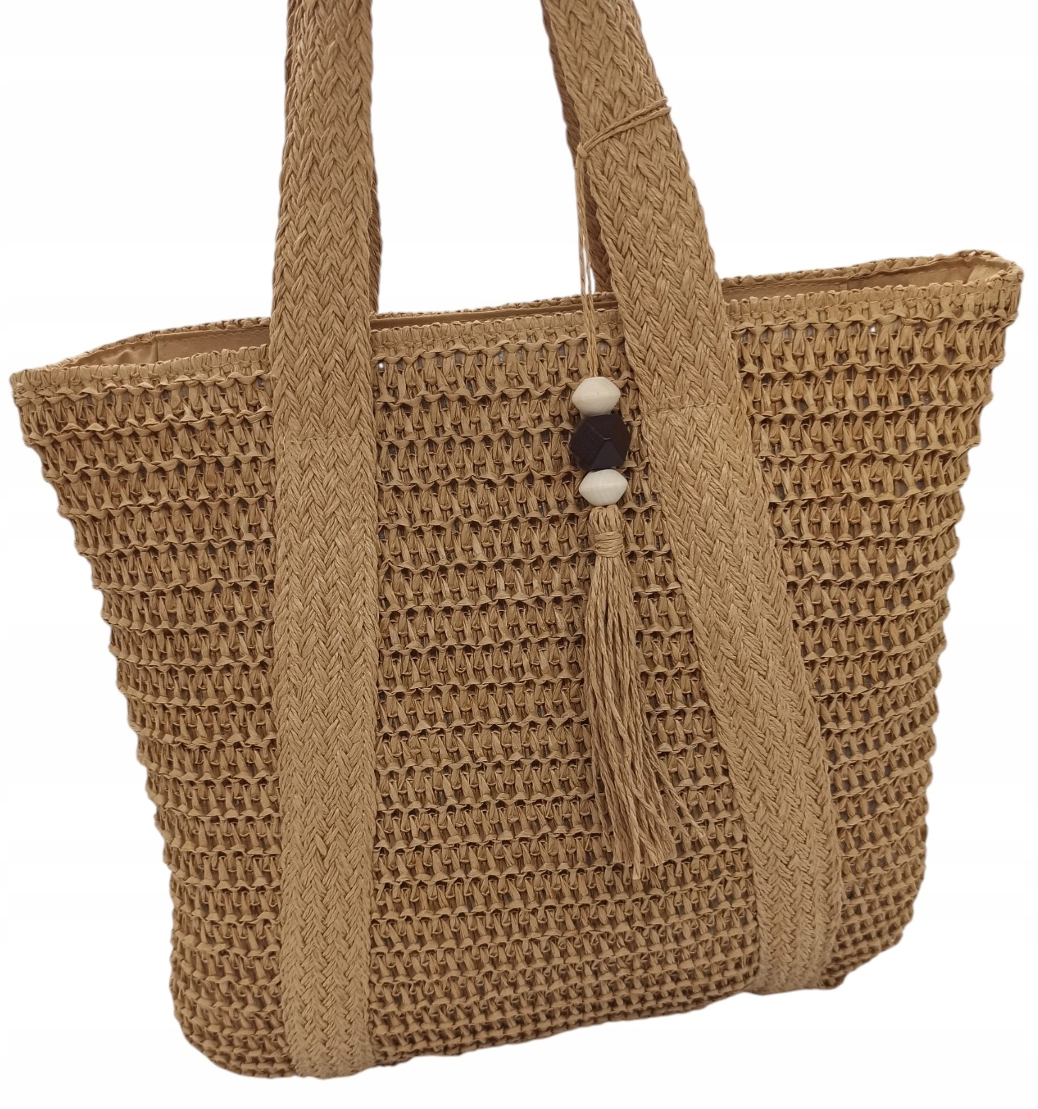 Poczuj letni klimat z naszą absolutnie urokliwą torebką plażową, która z miejsca stanie się Twoim ulubionym dodatkiem na lato! Ta pleciona, torba to kwintesencja wakacyjnej swobody i boho szyku. Idealna na upalne dni, nie tylko na plażę, ale również na spacery po mieście, zakupy czy spotkania z przyjaciółmi.