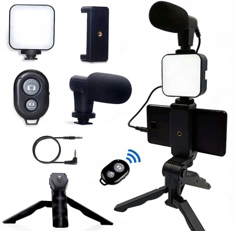 ZESTAW DO NAGRYWANIA FILMÓW STATYW MIKROFON ZDALNY PILOT 4W1 VLOGGER KIT