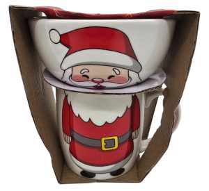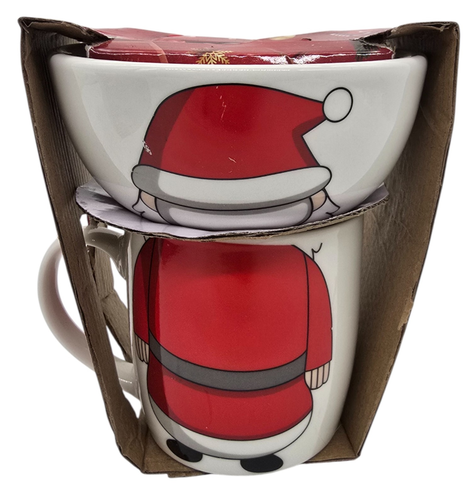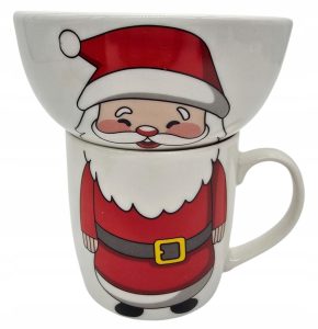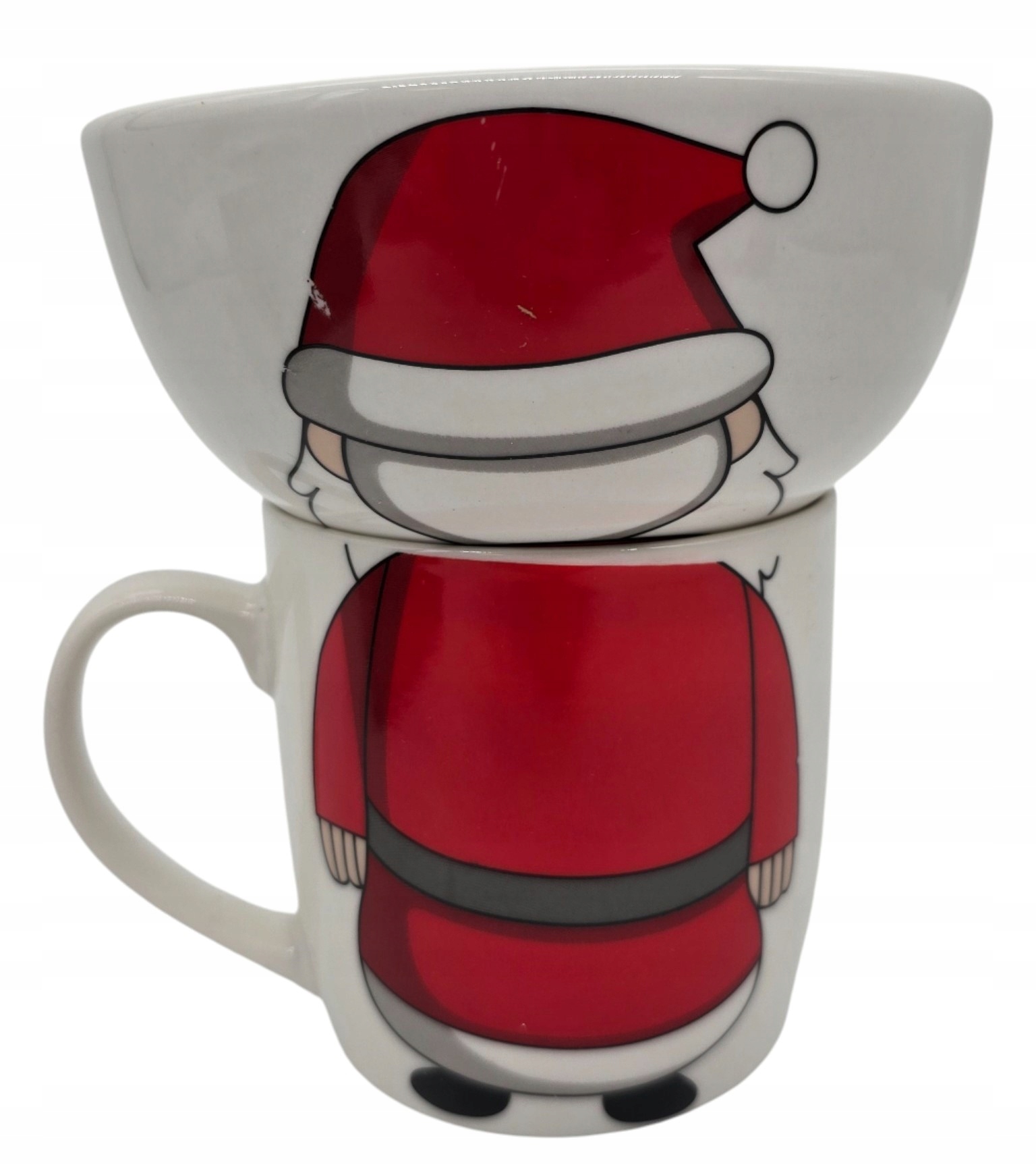 Ten kreatywny zestaw składa się z Kubka oraz pasującej do niego Miska/Salaterka, tworząc razem kompletną postać Świętego Mikołaja. Kubek przedstawia dół stroju Mikołaja (czerwona kurtka, czarny pas i nogi), natomiast miska idealnie do niego pasuje, ukazując głowę i czerwoną czapkę. To fantastyczny akcent, który natychmiast wprowadzi świąteczną atmosferę na stole.