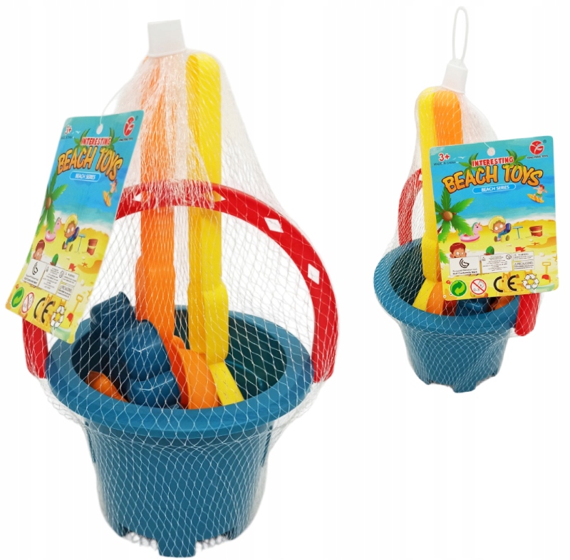 - ŻYWE KOLORY AKCESORIÓW: Mimo niebieskiego wiaderka, pozostałe elementy występują w radosnych, kontrastujących barwach (czerwony, żółty, pomarańczowy), które dodają zestawowi uroku.